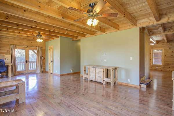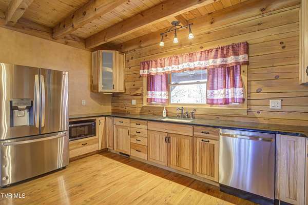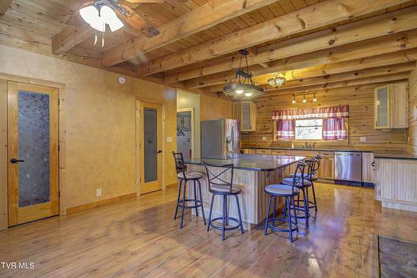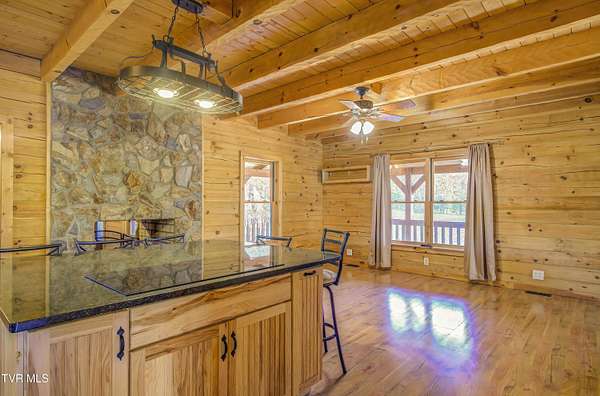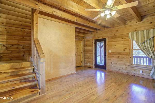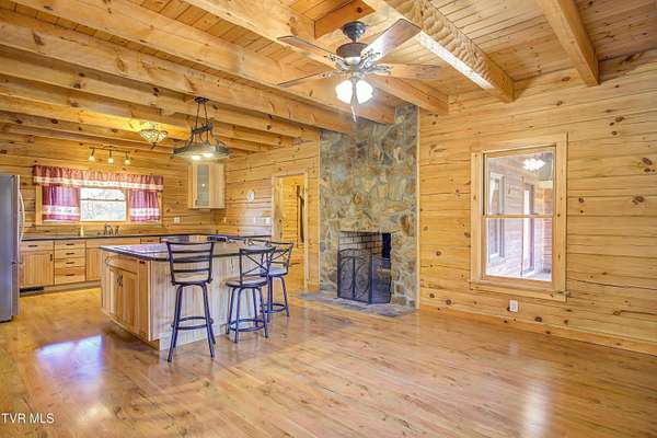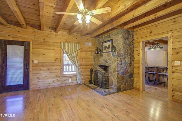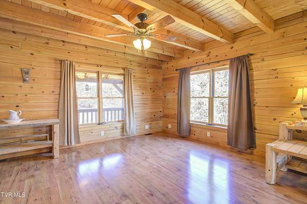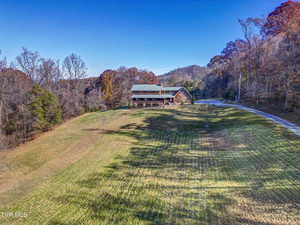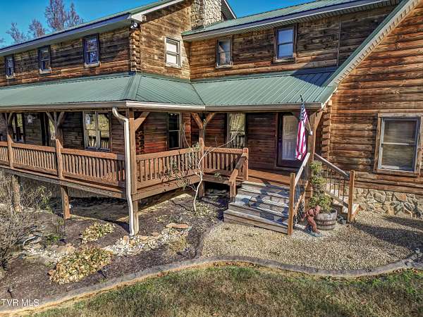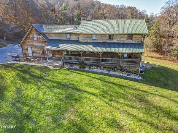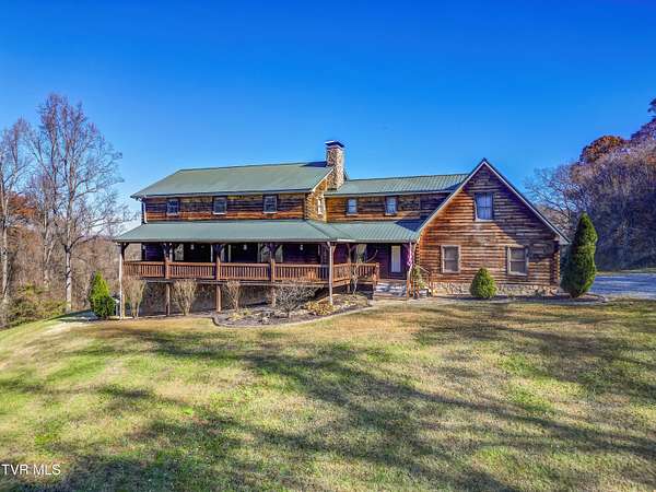 Experience True Craftsmanship in This Custom Log Home on 12 Acres. Welcome to a one-of-a-kind log home crafted from authentic logs sourced from the historic Old Virginia Hand Hewn Log Company. Set on 12 private acres, this 3,400+ sq. ft. home blends timeless craftsmanship with modern comfort, offering an inviting retreat surrounded by nature. Inside, you'll find four spacious bedrooms and 2.5 bathrooms, including a stunning primary suite. The primary bathroom features a dual-sink vanity, a relaxing Jacuzzi tub, and a walk-in shower. Just off the primary bath is an additional flex room-ideal as extra storage, a hobby space, a theater room, or even the walk-in closet of your dreams. The chef-inspired kitchen includes newer appliances, granite countertops, a large island, and a generous walk-in pantry. A charming double-sided fireplace warms both the kitchen and adjoining den, creating a cozy, connected living space perfect for gatherings. Additional highlights include a dedicated indoor laundry room, a walkout basement with a garage door, and a two-car garage. Enjoy peaceful mornings and evenings on the covered front and back porches, and entertain guests around the outdoor fire pit. Practical upgrades ensure year-round comfort and convenience: two water heaters (one tank and one tankless), two heat pumps-one for each level-and pre-wired generator capability. The sellers went the extra mile, hand-drilling every log to run electrical wiring internally, preserving the clean, authentic look with no exposed conduit inside or out. This extraordinary property combines rustic charm, thoughtful design, and modern amenities-all in a serene, private setting. It's not just a home; it's a handcrafted legacy waiting for its next chapter. Located just minutes to the highway and close to Kingsport and Johnson City. Appraiser stated square footage, buyer and buyer's agent to verify all measurements.