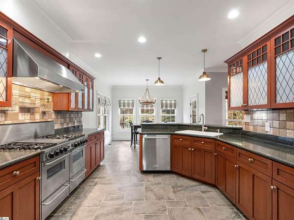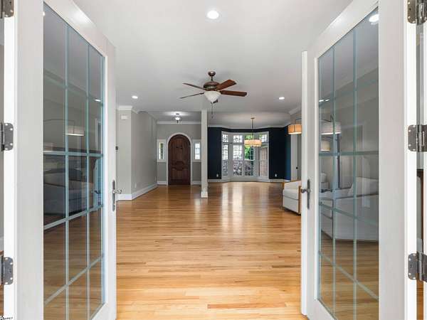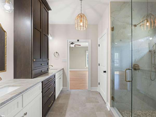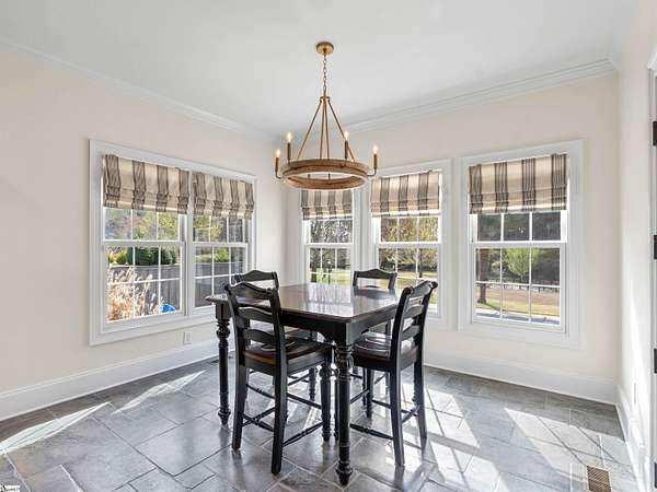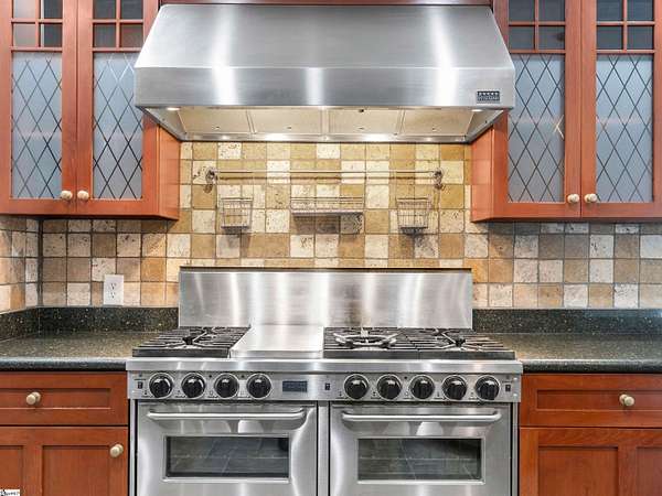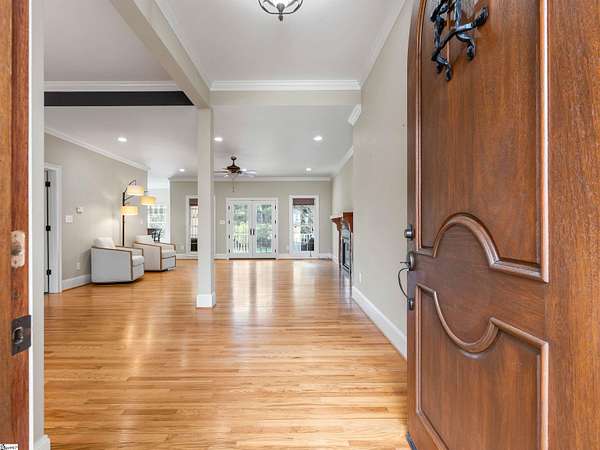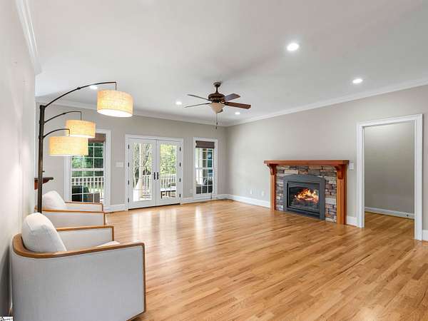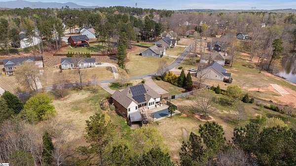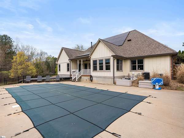 Call The Clayton Group with Real Broker at 864-895-8977! Tucked away on nearly 6 private acres in the quiet Cane Creek community of Campobello, this exceptional custom built estate offers a rare combination of refined living, thoughtful design, and unmatched privacy. Built for longevity and efficiency, the home features 50 year designer shingles and a Superior Walls precast concrete foundation system, providing enhanced structural integrity, energy efficiency, and a consistently dry basement environment. The grounds feel like a private retreat, with extensive landscaping that includes natural boulder accents, Japanese maple, palmetto, and a variety of fruit bearing trees and plants such as blueberries, grapes, pears, and strawberries. Inside, hardwood floors and tile span the main level, where a formal dining room and inviting living room with gas log fireplace overlook the covered patio and heated saltwater pool, creating a seamless indoor outdoor living experience. The kitchen is both functional and impressive, featuring updated lighting, a Five Star professional 6 burner propane range with double ovens and a commercial grade hood, ideal for entertaining or everyday living. The primary suite has been completely reimagined with a down to the studs renovation, showcasing a custom solid wood vanity built locally in North Carolina, quartzite countertops, a tiled shower with transom window, gold Delta fixtures with extendable sprayers, dual custom closets with built ins, and an additional linen closet. A private office with vaulted ceilings and a palladium window fills the space with natural light, while the elegantly updated powder room features wainscoting, marble finishes, and a Toto toilet with Tornado flush. Two spacious bedrooms on the opposite side of the home share a well appointed bath with dual sinks. The partially finished basement significantly expands the home’s versatility, offering a massive bonus room, two additional bedrooms, a full bath, and a connecting flex space, along with extensive unfinished storage areas that provide abundant room for organization, hobbies, or future expansion. A brand new HVAC system in 2026 services this level. Additional features include paid for solar panels delivering meaningful energy savings, a 500 gallon buried and owned propane tank, and a whole house tankless water heater. Outdoor living continues with a partially fenced yard, dedicated garden space, basement level covered carport, circular driveway with additional parking, and a side entry garage with metal roof accents. The property backs to neighborhood amenities including walking trails, playground, pond with dock, and a covered pavilion with fireplace, all while maintaining a strong sense of privacy. Located within walking distance to Landrum High School, one of the Upstate’s top rated schools, this is a rare opportunity to own a truly distinctive property in Spartanburg County District One. Agent is owner.