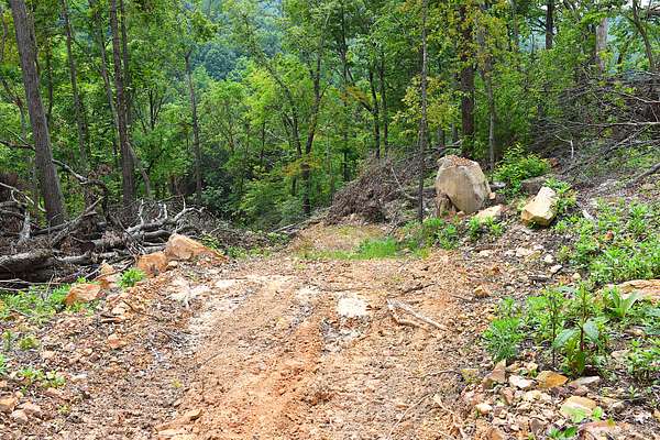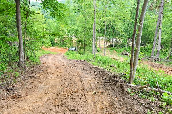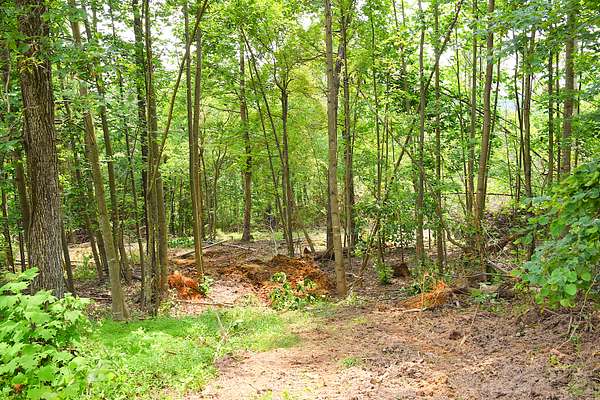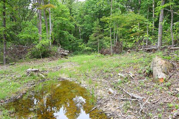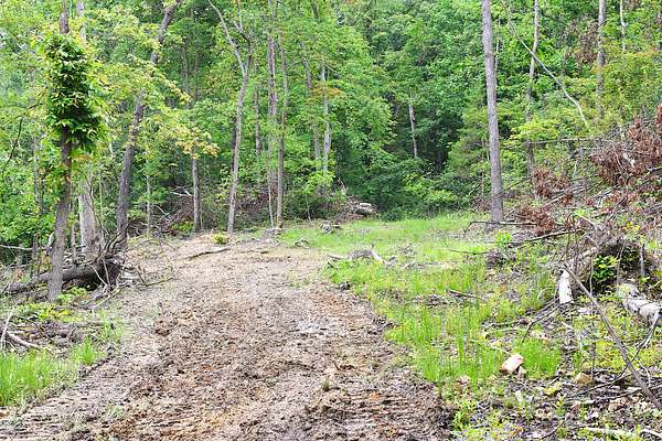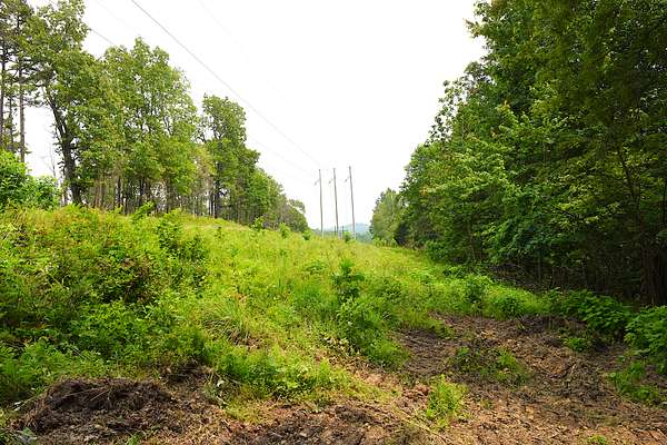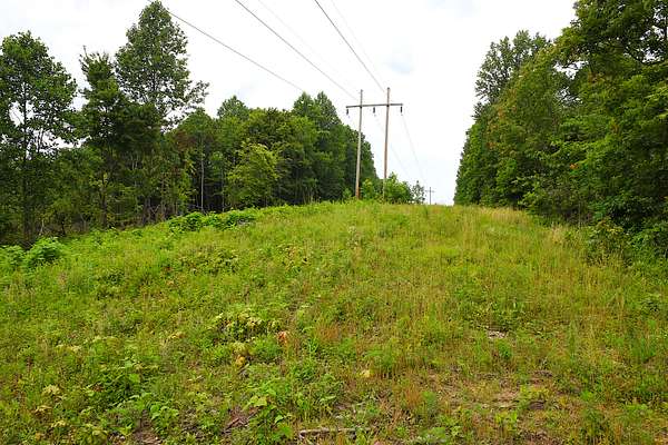 Concord Church Road, then rises up about 200' to a ridge, which is also a cleared transmission line easement, and then goes down the other side to front on Raider Hollow Road. Logging roads have opened up access to all parts of this property. There are multiple level building sites available. Great views from the ridge add value to this parcel.