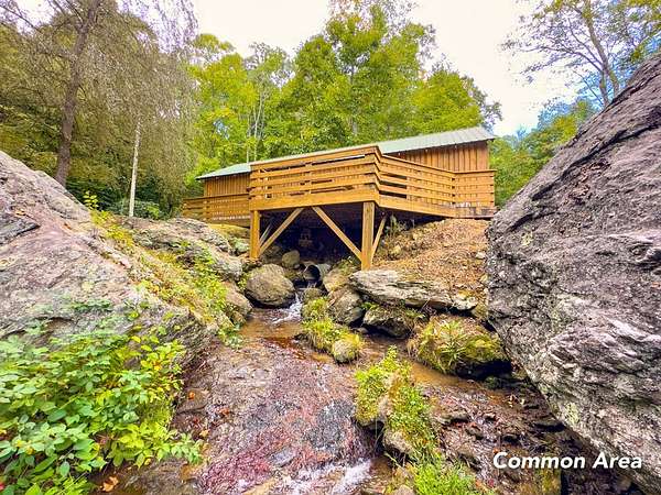 77 S Exit 8: Turn left on Chances Creek Rd, go to end of road, and turn right on Fancy Gap Highway. Go 0.9 mile then left on Ranger Rd. Go to end, then turn left on Blue Ridge Parkway. Continue to first Right on Lightning Ridge Rd. Then take first right Elk Spur Rd. Go 1.8 miles, then turn left on Little Waterfalls Trl. Go to the end of Little Waterfalls Trl, then turn left on Covered Bridge Trl. Property is on the R. For GPS, use 662 Covered Bridge Trl.
