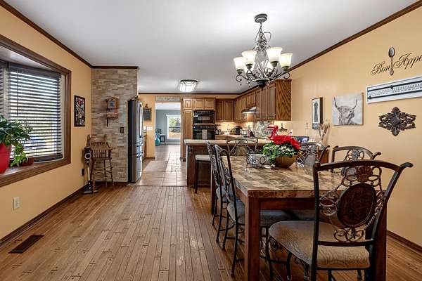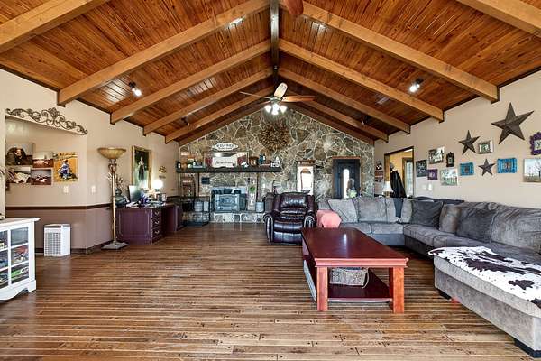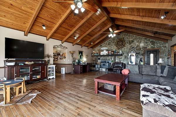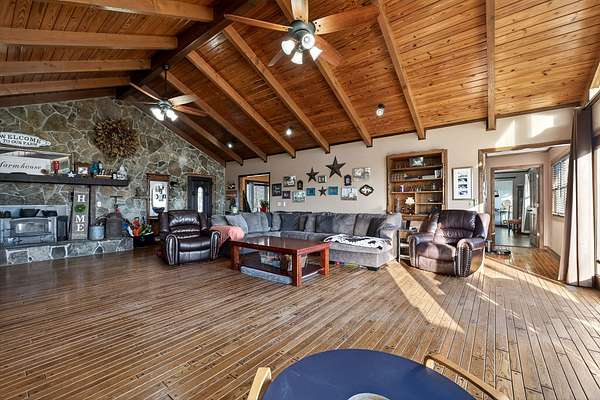 COMING SOON! Professional interior pictures will be available soon! This spacious 3-bedroom, 2-bath home offers approximately 3,657 square feet of living space and sits on 17 beautiful acres with a gated driveway. The main level features a living room, kitchen, eat-in dining area, and a separate den. The basement offers a large bonus area with several storage rooms, a full bathroom suite complete with a sauna, and a theatre room.