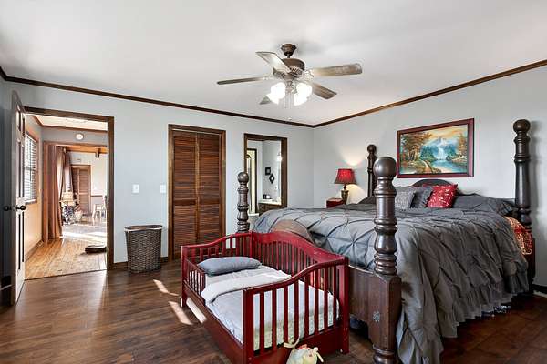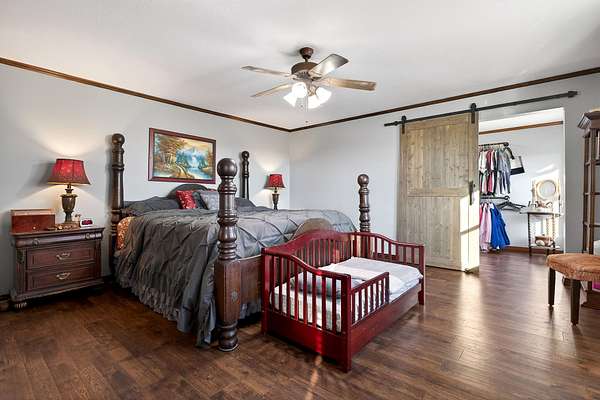 The property includes both an attached 2-car garage and a detached 2-car garage with an apartment above it. Outdoors, you'll find a fenced backyard and a large barn. Hardwood, tile, and laminate flooring run throughout the home. STAY TUNED FOR MORE DETAILS!
