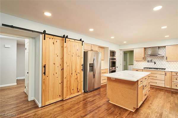 Tucked away on a quiet cul-de-sac in the Revere School District & situated on 1.5 acres is this stunning Colonial offering over 3400 sq ft w/$250k+ updates! The home combines modern improvements w/a layout designed to fit today's lifestyles, from everyday living to entertaining - the list goes on. The main level features refinished hardwood floors, fresh paint, updated lighting, new windows, & an inviting front entry. Multiple gathering spaces include a bright family RM w/picture window & in-wall speakers, a formal dining RM w/wainscoting,& a cozy hearth room w/wood-burning FP. A drop zone, laundry, updated half BTH, & a flexible main-floor BDRM that works perfectly as a home office complete this area. At the heart of the home, the remodeled kitchen boasts maple cabinetry, a large center island, farmhouse sink, 36" gas range w/pot filler, double oven, & walk-in pantry. The adjoining dining space opens to a private patio surrounded by terraced gardens & mature trees-an ideal setting for summer dinners or quiet mornings w/coffee. A true highlight is the first-floor in-law suite w/its own private entrance, living room, kitchenette, spacious bedroom, ADA-compliant bath w/roll-in shower, direct garage access, & a walk-out to the backyard. It's perfect for extended family, guests, or anyone who appreciates independence w/convenience. Upstairs the primary suite features refinished hardwoods, a renovated bath w/dual vanities, heated floors, & a walk-in closet. Three add'l bedrooms, an updated full bath, & plenty of storage round out the second floor. Recent improvements include: 200-amp electrical, radon system, HWT (2024), furnace (2021), A/C (2021), gutters (2020), & partial roof replacement (2020). With wooded privacy, flexible living spaces, and thoughtful updates throughout, this home is move-in ready and a wonderful place to call home.