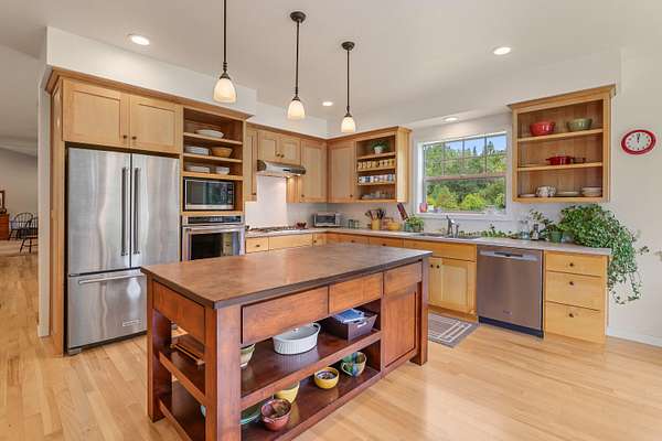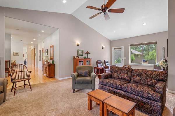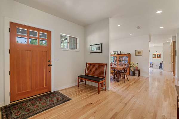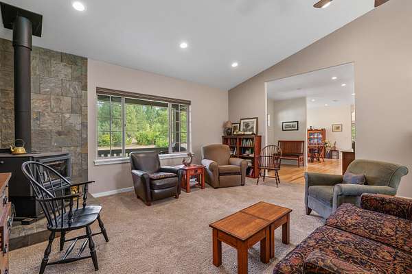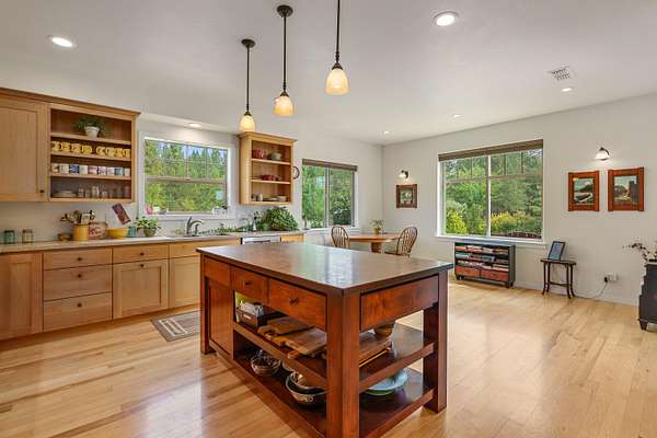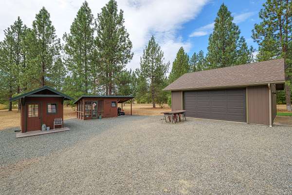 Welcome to 255 Mountain Paradise in the highly desired Paradise Valley Estates of Hugo, Oregon. This single-level 2,356 sq ft home sits on 5.01 flat, usable acres & is being offered for the first time. Featuring 3 bedrooms, 2 bathrooms, 9 ft ceilings, & a 13 ft vaulted living room, the home is finished with hickory floors, alder cabinets, & solid-core 3 ft doors with 4 ft hallways. The spacious primary ensuite includes two walk-in closets, privacy insulation, & a granite shower. Two detached garages provide parking for five vehicles or shop space. Enjoy the fenced garden with garden house, chicken coop, RV parking with power & water, plus a Generac 22kw Home Generator. With a large covered patio for outdoor living. Constructed with 2'6'' walls and blown insulation, the home is designed for comfort & efficiency. A strong well ensures reliable water. This property offers the perfect blend of function, beauty, and lifestyle--truly the Oregon Dream. Call for your private tour today!