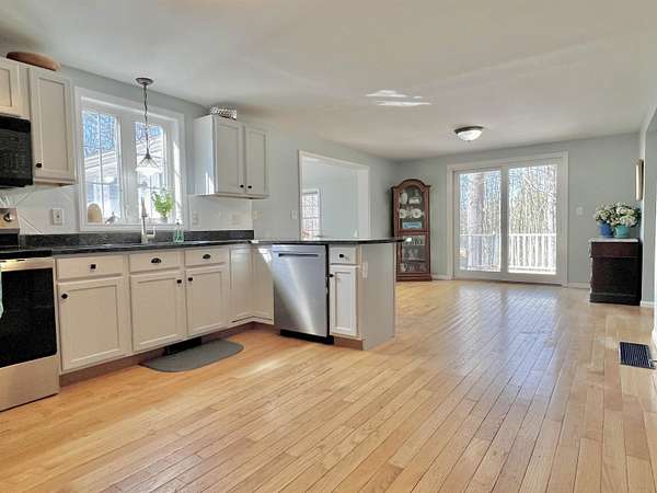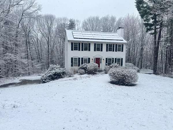 Open house on Sunday, 11 am - 1 pm. Welcome home! This beautiful 3-bedroom, 3-bath home sits on just under 2 acres at the end of a dead-end road, set in a highly desirable neighborhood offering the perfect blend of convenience and privacy. Perfectly located near Routes 13 and 101 for an easy commute, yet tucked into a peaceful, rural setting. The kitchen features brand new granite countertops and is large enough to give the option of eat-in dining or the use of a private dining room (which could also be used as an office or 4th bedroom). The 1st floor boasts hardwood floors while the staircase and all 3 bedrooms have brand new carpet. The expansive primary suite with walk-in-closet takes up half of the upstairs while another full bath and 2 bedrooms have just been painted. Soak up the sun either on the deck or in the above-ground pool, where you have your privacy while enjoying nature all around. Additional highlights include a 2-car garage under, central AC, gas fireplace and shed. Extensive updates over the years include a newer architectural shingle roof, solar panels, generator hook-up, Renai tankless on-demand water heater, newer well-pump, and brand-new thermostat. The sizable lot provides ample room for outdoor activities and leisure. The property's mature landscaping and natural vegetation offer a serene and private setting. Don't miss out on this move-in-ready home in one of Milford's favorite neighborhoods. Seller is licensed agent.