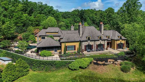 Welcome to Villa Segrata-The Secret Mountain Villa--a hidden Smoky Mountain sanctuary of luxury, privacy, & peace. Nestled behind a gated entrance, surrounded by 57.43+- pristine acres, this one-of-a-kind estate was designed by world-class architect Jack Arnold. Built as a legacy retreat where European elegance meets rustic mountain, this one-owner custom residence spans 10,993 sq ft under roof with 5 BR, 5 ensuite baths, incl. full guest apartment w/ private entrance. Unmatched craftsmanship includes hand-scraped poplar wood floors, solid wood doors, imported limestone, 9 fireplaces, soaring ceilings up to 25 feet, hand-hewn solid wood beams, R-40+ insulation, lifetime architectural shingles, Kolbe black windows, heated floors in primary bath and kitchen, Italian mosaics, tumbled stone, granite throughout, custom cabinetry, & more.