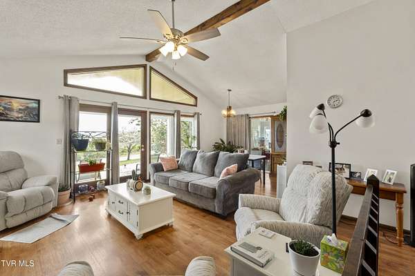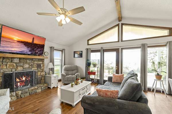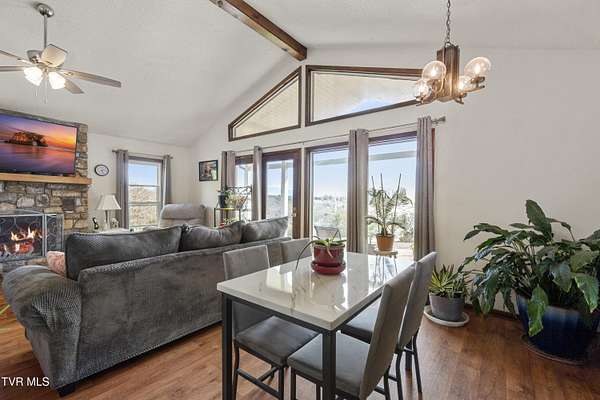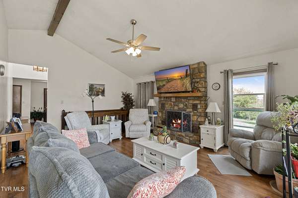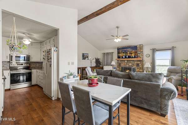 Enjoy contemporary style, scenic beauty, and privacy with this 2-bedroom, 2-bath home offering 1,770 square feet on 4.6 partially wooded acres in Southwest Greene County. With stunning mountain views, beautiful landscaping, and a detached 2-car garage, this property offers a rare combination of comfort, function, and natural beauty. The exterior is a true standout, featuring mature and thoughtfully designed landscaping with dogwoods, Japanese maple, ornamental orange, crepe myrtles, and wisteria. The setting is peaceful and inviting, with three porches positioned to enjoy the surrounding beauty and mountain views. Inside, the home features cathedral ceilings that create an open and airy feel, along with laminate and carpet flooring and a tiled sunroom. The kitchen is well-equipped with granite countertops, double stainless sinks, a smooth top range, microwave, and compactor. Ceiling fans are found throughout the home, and the laundry room offers additional storage for convenience. The primary suite includes a walk-in closet and linen closet, while the second bedroom features double closets. A possible third bedroom or flex space is available in the basement or sunroom area, giving you options for guests, an office, or hobby space. Additional highlights include a gas log fireplace, fitness area, attic storage, metal roof, cable and internet availability, and energy-efficient geothermal heating and air. The detached 1,008-square-foot 2-car garage with door openers adds excellent space for vehicles, storage, or workshop needs. This is a unique opportunity to own a well-maintained home with character, acreage, and mountain views in a beautiful Southwest Greene County setting. All information taken from a third-party source (courthouse/tax records) and to be verified by the buyer/buyer's agent. Drawn in lines are approximate. Some elements (fires in fireplaces, twilight shading, lighting, etc.) have been added/modified digitally. Rooms noted have been virtually staged for decorating ideas only, not to scale or representative of any product.