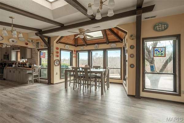 Nestled on 3.77 +/- acres of scenic countryside, this 3,224 +/- sq ft home is ideal for large families or those needing extra space for multi-generational living. With 5 bedrooms, 3 bathrooms, there's room for everyone to spread out. The home offers multiple living areas, including a living room, family room, and a large bonus room with a bar, making it perfect for gatherings and everyday comfort. Skylights bring in natural light, adding to the home's warm and inviting feel.