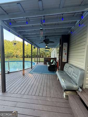 10.9 acres with a stream/creek on back of property and too much wildlife to mention. This property also has an RV hookup, an above ground pool with a deck surround that is fully equipped with an outdoor "chef's station for the grill master", and there is an ATV track out back too. These are just a few of the "outdoor features". The house plan was lovingly selected and built by these homeowners in 2017. Upon arrival, A pretty front porch ushers you into an entry foyer overlooking a large family room with stone accent real wood burning fireplace, vaulted ceilings and exposed beams that continue throughout the open floor plan into the kitchen and dining area. The kitchen boasts a large island, new stainless-steel refrigerator and a farmhouse sink with a window above it overlooking the outdoor pool area. The laundry room is roomy with a utility sink and the new water heater. There is side/kitchen level entry from the outdoor parking pad for bringing in those groceries. All the bedrooms are spacious. There is a jack and jill bathroom with 30-inch dual vanity between 2 of the secondary bedrooms. The owner's suite is large enough for YOUR California King bed and all the dressers and nightstands that accompany them with room left over! The adjoining master bathroom is a dream, with garden tub, separate shower, and double vanities. This home has been beautifully maintained and has all the outdoor and indoor characteristics you need! Call your favorite Realtor today and have them schedule your appointment.