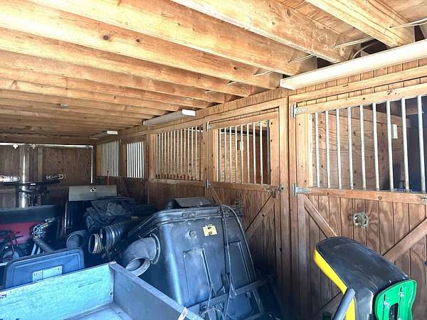 Charming Horse Property with Spacious Barn set on 2 Acres. Two lots being sold together - includes .25 acre with home and 1.75 acre flag lot set behind. This delightful property is ideally situated between the LIE and Sunrise Highway, blending country charm with equestrian features. The inviting ranch home offers a cozy kitchen with breakfast nook, a formal dining room, a family room, and two bedrooms. It boasts hardwood floors, recessed lighting, gas cooking, oil heat, 200 amp electrical system, and a full, unfinished basement. Equestrian amenities include a six-stall barn featuring a 10-foot concrete center aisle. Each stall is equipped with safety lights, windows secured with safety bars, and ground fault outlets throughout. The sturdy hayloft floor can accommodate up to 8 tons of hay. Additionally, the barn contains a fenced concrete wash stall for convenience, as well as multiple back corrals, each measuring 100 feet by 150 feet, with the option to open the center gate for a larger area. Don't miss this one!