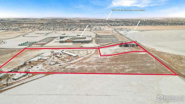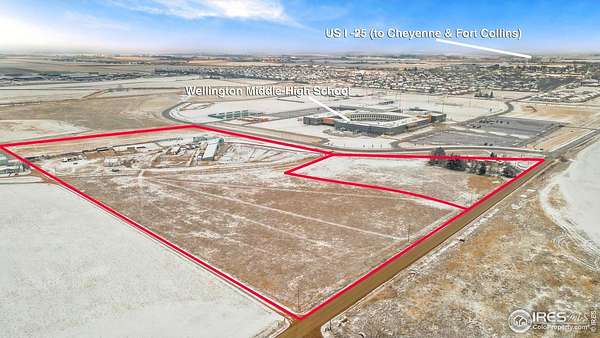 Located in Wellington, one of Northern Colorado's fastest-growing communities, with easy access to Fort Collins, Cheyenne, Laramie, and Denver, this property is well positioned for projects that serve a growing population. As the town continues to grow, demand is rising for everyday services, community amenities, and thoughtful development. Whether the vision includes convenient lunch options for students at the adjacent middle/high school, the long-awaited pool residents have been asking for, or accessible childcare, this land offers the space and location to make it work. Two purchase options allow for flexible planning: Lot 1 (4.02 acres) and Lot 2 (16.84 acres) for a combined 20.86 acres. Pricing is $2,800,000 for Lot 2 only or $3,500,000 for both lots together. Take a look around, think long-term, and bring your vision. Opportunities to develop at this scale, in this location, and at this stage of Wellington's growth are increasingly rare. Note: Development ideas referenced are for illustrative purposes only. Buyer to verify zoning, approvals, and feasibility of any intended use.