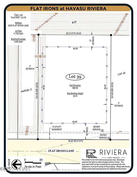 Stop Dragging Your Boat Around! Live in a Beautiful New Custom Home Development with its Own Marina. Located in the Luxury Havasu Riviera Flat Iron District, Gated Community, Easy Access To The Marina, Boat Launch, Boat Gas Station, and Convenience Store. Stunning Mountain Views, Flat Level Lot Ready to Build! Lot #39 Backs to BLM Land, This Lot Allows for 30' Height Limits, Letting You Build Your Dream 2-Story Custom Home, and Enjoy All The Best Desert Activities Lake Havasu City Has to Offer. Just Minutes Away, From Main Street Bars, Restaurants, Shopping, Off-Roading, Boating, Golf, Mountain Biking, Harley Rides, Jet Skiing on a World Class Champion Race Track, Take the Dogs to 1 of 3 Dog Parks Nearby, Walk the Channel & View The London Bridge, Go Paddle Boarding, Kayaking, Hiking, Swimming And More! This is an Outdoor Adventurer's Dream Location. Or Just Stay in and Relax in Your Newly Built Custom Home. Lot Just Needs Your Vision & Imagination, Ready to Build! Must See this Community and Lot To Truly Appreciate!