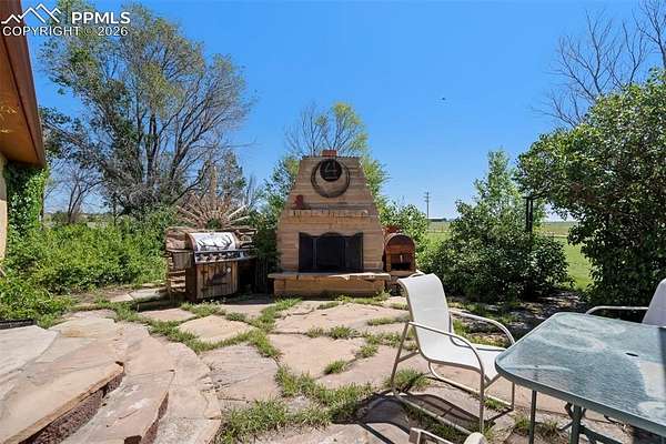 Welcome to a legacy of Colorado living, where modern comfort meets timeless land. Nestled on 40 sprawling acres of horse-ready prairie, this extraordinary property tells a story generations in the making. Once part of an 1800s homestead, the soul of the land is still present in the original lilac bushes that bloom near the home each spring, and in the hand-selected wood accents carried throughout the house-reclaimed from the very homestead that stood here before. | Inside, the home is a masterclass in warmth and thoughtful design. The open-concept main level was built for easy, single-level living. A spacious kitchen serves as the heart of the home, complete with a built-in island, breakfast bar, and gas stovetop. The primary suite is a true retreat, featuring a look-through fireplace, bay window with built-in storage, walk-in closet and second hidden (lockable) closet, plus a private bath with a jetted soaking tub. A second en-suite bedroom offers added flexibility for guests or multigenerational living. Natural light pours into the south-facing sunroom, while the office is outfitted with custom shelving which invites productivity. The unfinished basement offers plenty of room to grow. | Outside, the possibilities are endless. A custom stone patio with fireplace sets the scene for memorable nights under the stars. A metal outbuilding with concrete floors provides storage or workshop space. The barn includes stalls, a tack room, chicken coop, with water and electricity. Zoned for horses and livestock with the option to purchase an additional 40-acre adjoining parcel directly to the west. A rare blend of history, utility, and wide-open freedom-this is where your Colorado dream takes root. | Approximately 10 minutes to Schriever Space Force Base, 20 mins to Peterson SFB, 10 minutes to the town of Falcon, and 30 minutes to Colorado Springs.
