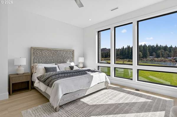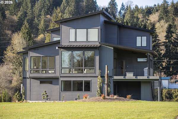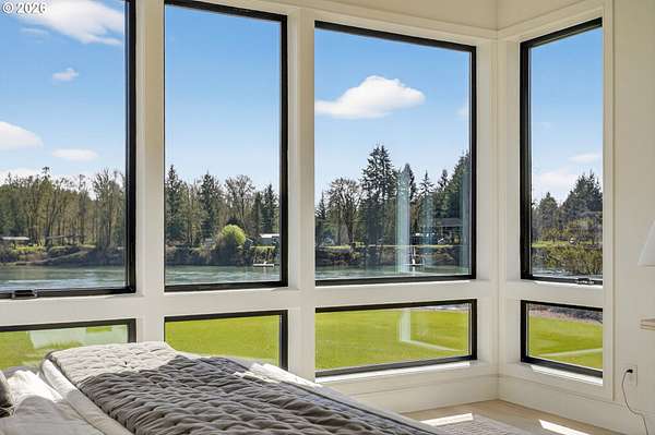 3 Story Elevator and Private Boat Launch. Discover your private oasis with this stunning custom-built home on 2 acres, nestled along the serene banks of the river. Breathtaking views and an inviting landscape await you, making this property truly one-of-a-kind.Situated on over 300 ft of low bank riverfront which includes a private boat launch so you can enjoy easy access to water activities. This home features expansive windows that flood the living spaces with natural light, offering panoramic river views throughout. Showcase gourmet kitchen is equipped with all Thermador appliances including custom paneled built in refrigerator, freezer and wine cooler. Elegant dining area and living room with high ceilings and windows plus sliding doors creates an ideal space for entertaining and family gatherings with view backdrop. Enjoy privacy and comfort in the spacious primary suite, complete with an en-suite bathroom and custom walk-in closet with lighted cabinetry. Designed for ease of living, a three-level elevator makes transporting groceries and shopping items available to every floor. A patio overlooking the river features a built-in BBQ, firepit, and heaters, perfect for maximizing your outdoor living season. Ample parking space along with shop space and additional storage for outdoor equipment and recreational gear. This custom home offers the perfect blend of luxury, comfort, and practicality. Surrounded by beautiful landscapes, you can enjoy the feel of a private retreat while being just minutes from downtown Woodland, 12 minutes from fine dining and entertainment at Ilani Casino, and 15 minutes from Ridgefield Costco.