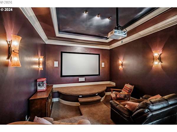 - High Ceilings, Home Theater, Jetted Tub, Laundry, Sound System, Tile Floor, Wallto Wall Carpet, Washer Dryer