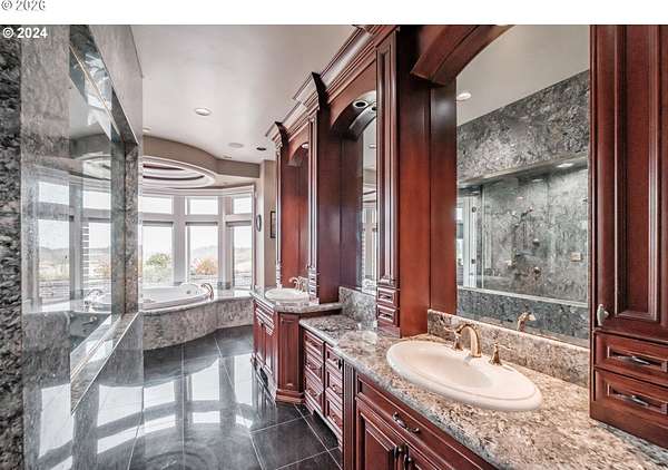 - Home Theater, Jetted Tub, Laundry, Sound System, Tile Floor, Wallto Wall Carpet, Washer Dryer