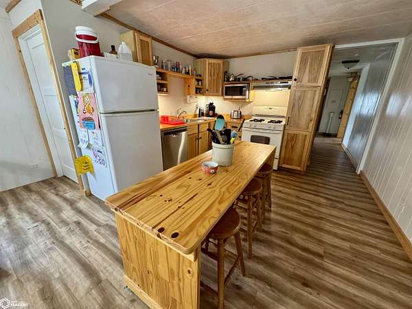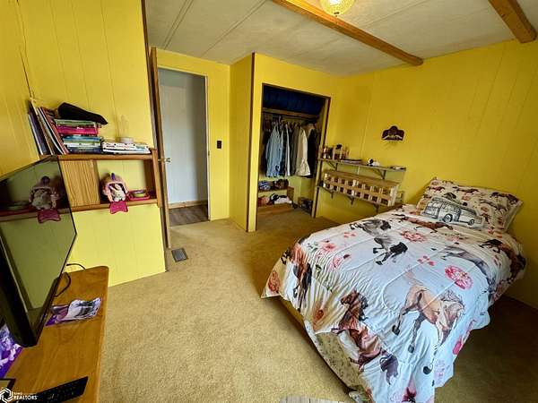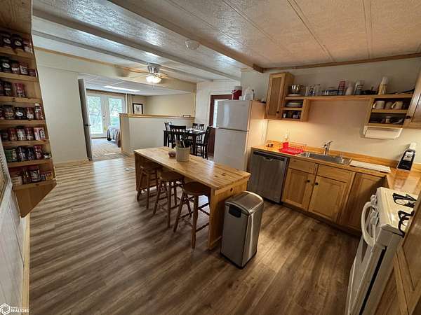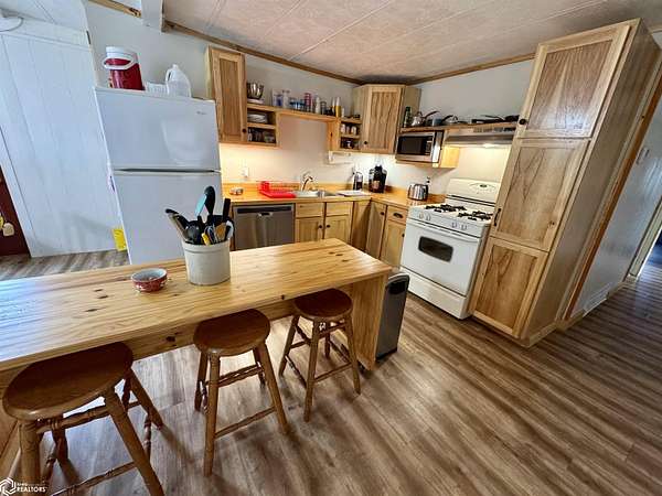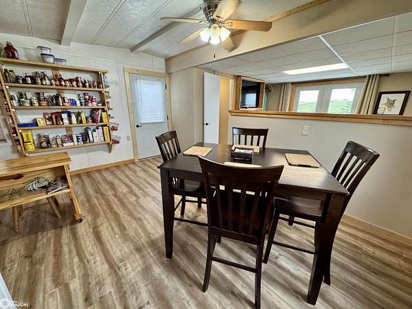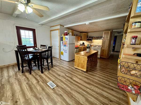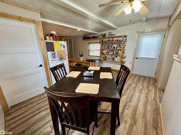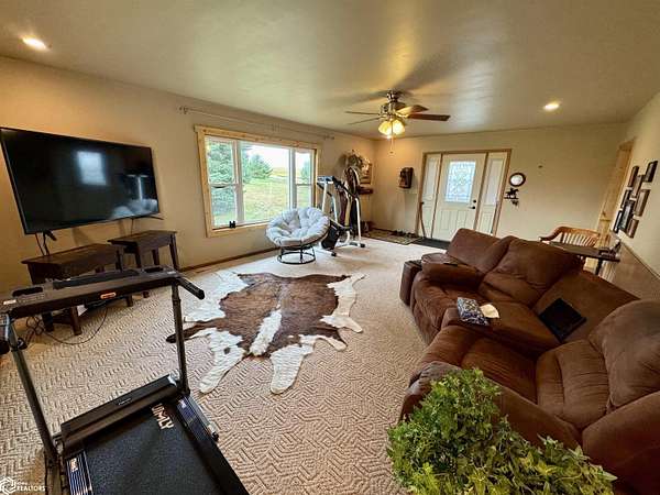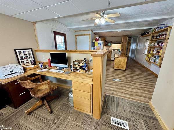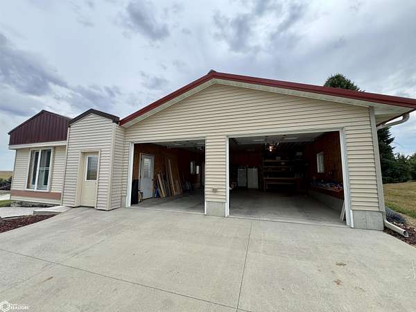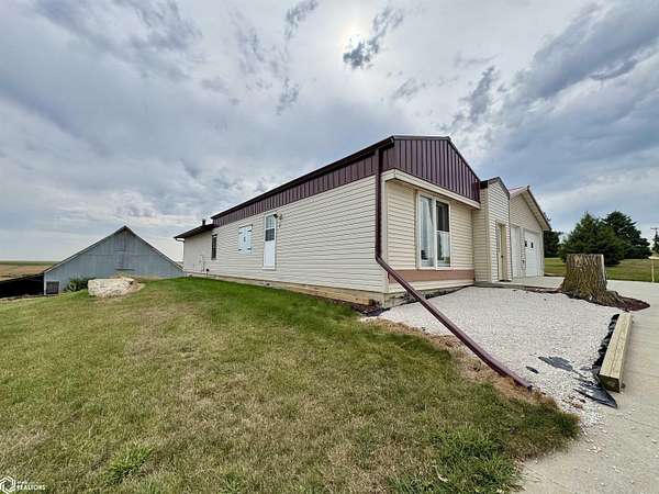 NEW price improvement to $329,500! Seller is offering a 1-year Home Warranty to a qualified conventional buyer. Possession is negotiable. Offer ends 12/10/2025. Cost Approach: Land: $60,000 Dwelling: $142,000 Garage: $53,500 Shop: $66,000 Barn: $8,000 This versatile 5.6-acre acreage (approximately 2.5 acres of pasture) sits on just 1/2 mile of gravel road and is conveniently approx. 22 miles from Carroll and 16 miles from Audubon. The energy-efficient manufactured home, built with 2x6 walls (16" OC), features a remodeled kitchen, updated bathroom, and a newly remodeled third bedroom with walk-in closet and 1/4 bath. The bright, spacious living room offers plenty of natural light, and the full basement provides great potential with plumbing for another bathroom and two bonus rooms ideal for bedrooms, storage, or recreation. Outside, you'll find everything you need for work or hobbies: a 30x32 insulated and heatable 2-car garage (built in 2015), a 30x40 heated shop (built in 2007) with 200 AMP service and dual garage doors, and an all-metal barn with loft, concrete floors, and lean-tos. The property also includes a fenced pasture area and a variety of mature trees for shade and wind protection--including apple trees. With rural water, an up-to-date septic system (2022), and space for both livestock and recreation, this acreage is ready to meet your lifestyle needs.