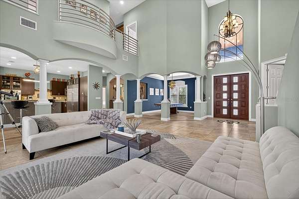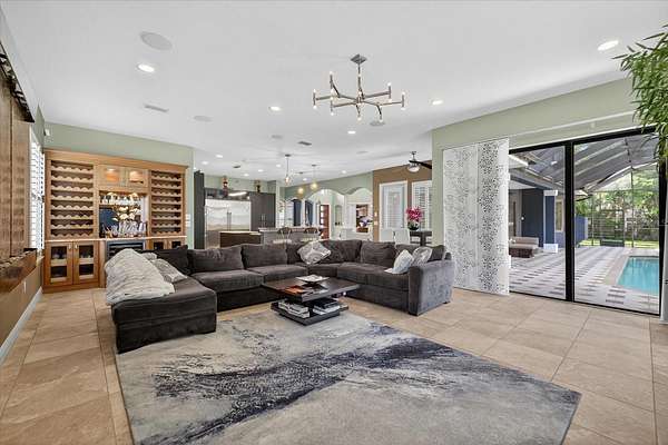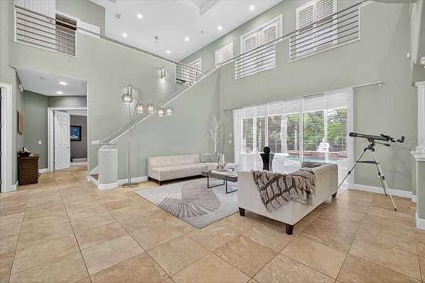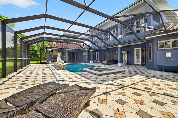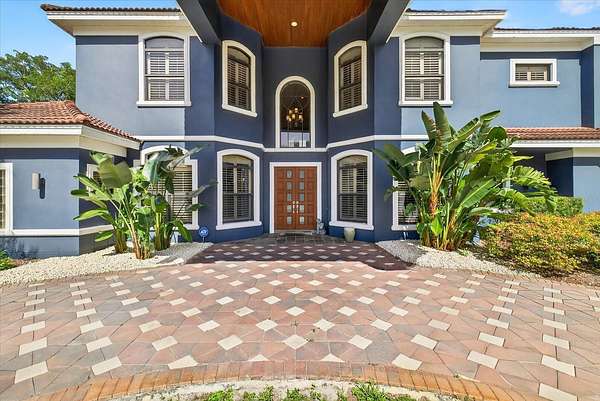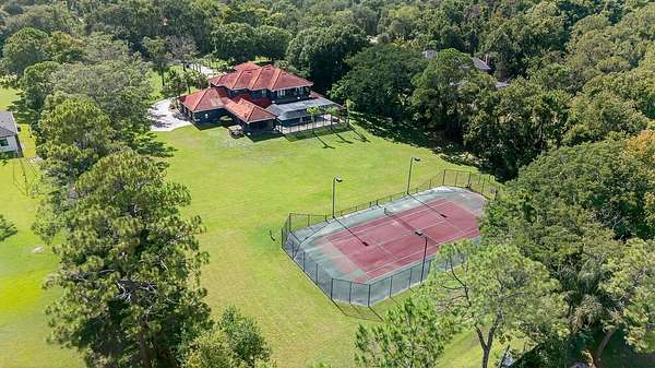 A Private Transitional Modern Estate Designed for Elevated Living.Privately gated and set on over 2.4 acres of manicured grounds, zoned R-A and located in unincorporated Pinellas County within an X flood zone, this custom-built transitional modern estate offers an exceptional opportunity to own a rare combination of architectural sophistication, privacy, and lifestyle-focused design. Completed in 2009 with enduring materials and thoughtful detail, the residence presents over 5,000 square feet of living space tailored for both grand entertaining and serene daily life. The zoning and acreage also provide equestrian and agricultural potential (Currently zoned for horses!), appealing to those seeking a more versatile luxury estate. An impressive 22-foot ceiling height welcomes you into the main living area, where an abundance of inviting natural light showcases sweeping views of the screen-enclosed, resort-style pool, private tennis and basketball court, and lush landscape beyond. The outdoor living area is equally impressive, featuring a covered summer kitchen with built-in grill, sink, and kegerator, perfectly suited for dining and year-round entertaining. The open interior layout is complemented by refined finishes with tile flooring throughout living spaces and custom architectural millwork. The gourmet kitchen anchors the home's entertaining spaces with granite countertops, a center island, and breakfast bar seating--perfectly situated for effortless flow between indoor and outdoor gatherings. Downstairs, a custom-built bar creates a dedicated space for entertaining, while multiple balconies upstairs provide quiet vantage points to enjoy the property's peaceful setting. The primary suite is a graciously proportioned private retreat, featuring a gas fireplace, dual walk-in closets, spa-style bath with dual vanities, and direct access to the pool terrace. Five additional bedrooms, a home theater, and a private executive office with custom built-ins provide versatility, while a large flex space upstairs offers a dedicated area for remote work, creative pursuits, or a secondary lounge.The home has been updated with a newer HVAC & 2 additional recently updated HVAC systems with four-zone climate control, includes an oversized three-car garage, GAS appliances, unmetered well water for irrigation and a long, gated drive that ensures complete privacy from the outside world. Feel at ease knowing this home comes with MDCA HURRICANE IMPACT windows & sliders. Every element of this residence speaks to the needs of today's discerning buyer--those who value elegance, privacy, and the convenience of a self-contained lifestyle. Situated within and currently zoned for top-tier schools, this location Combines seclusion with accessibility, providing smooth connectivity for professionals on the move and executive amenities, this property offers a rare opportunity to acquire a legacy estate of architectural merit and enduring comfort. Call today to schedule your private viewing!