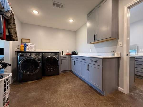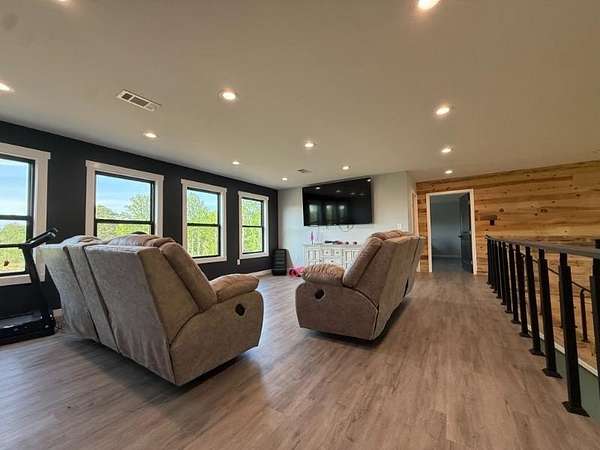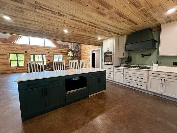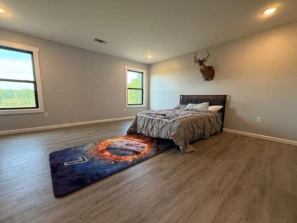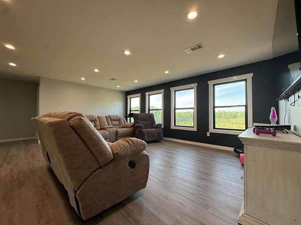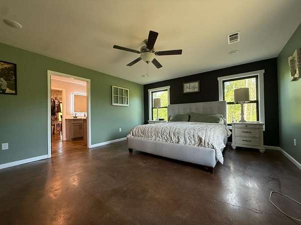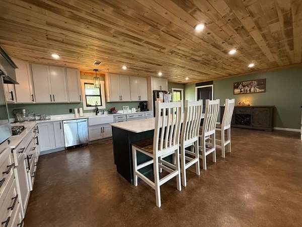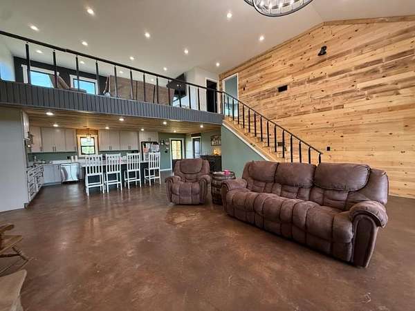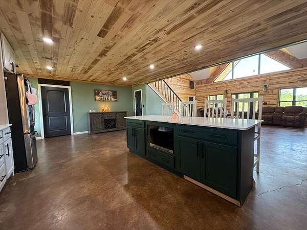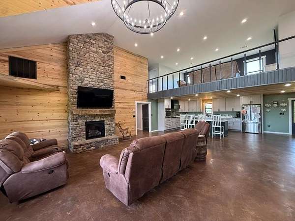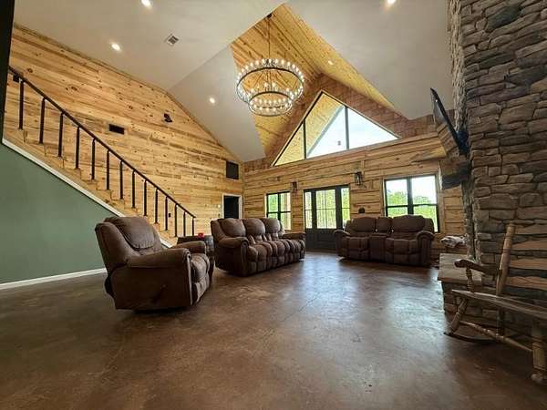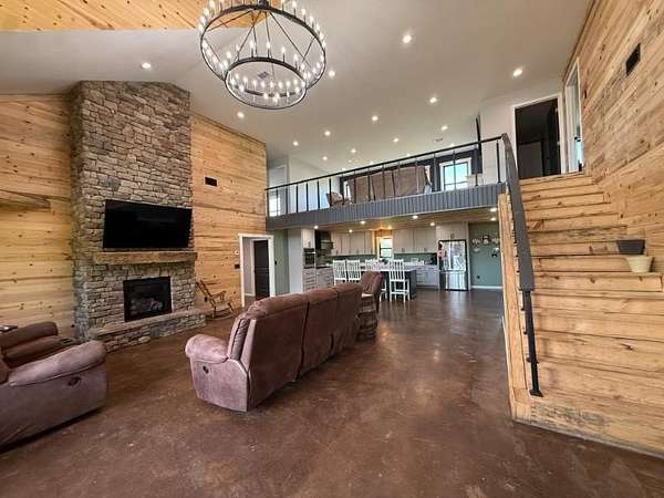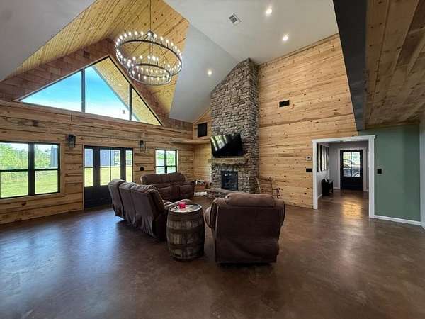 Don't miss this beautiful custom-built home on 70 acres in Dorsey! Home features a beautiful 22ft vaulted living room with 16ft ceilings, stone fireplace, stained concrete floors, open to a large kitchen with wood ceilings, custom cabinetry, quartz countertops, stainless steel appliances, a large kitchen island with eat-at-bar, walk-in pantry and utility closet. Downstairs has 2 spacious bedrooms with hall bath, mudroom/entranceway, separate master ensuite with his & her vanity, separate make-up vanity, large tile shower, oversized walk-in closet with laundry room and private office. Upstairs features a large bonus living area or landing, 2 spacious bedrooms with large closets, hall bathroom, and two walk-in attic storage rooms. Outside a large covered back porch overlooks the beautiful