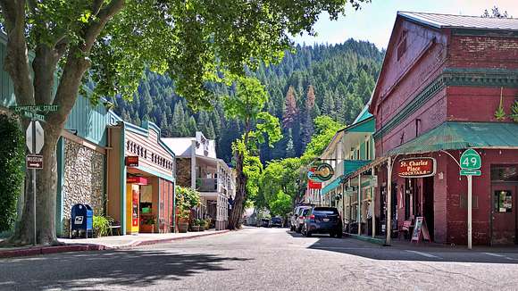 The property is located under 9-miles east of Downieville on CA 49, AKA The Golden Chain Highway, running along the North Yuba River. The bustling town of Nevada City is a bit over an hour's drive to the west with Grass Valley a few mins further along CA 49. Lake Tahoe is just 1.5-hours to the southeast. See the Recreation, Region & Climate Description, and History sections for more information.