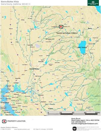 Sierra Buttes Vista is 466 acres of prime recreational land in Sierra County, CA. This scenic property is located along highway 49 near the mighty North Yuba River, between historic Downieville and Sierra City. Nestled in the Tahoe National Forest between Nevada City and Truckee, this versatile Sierra Nevada property is excellent hunting land with development potential. This mountain property is ready for your cabin, home or recreational retreat.
