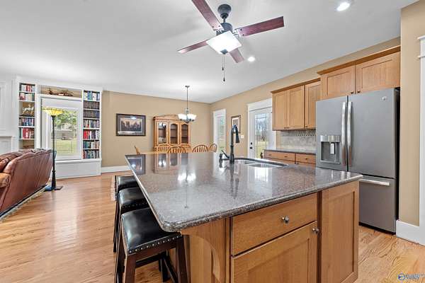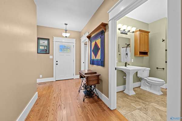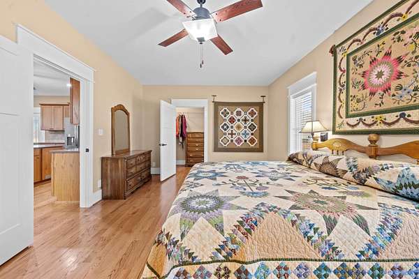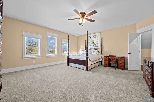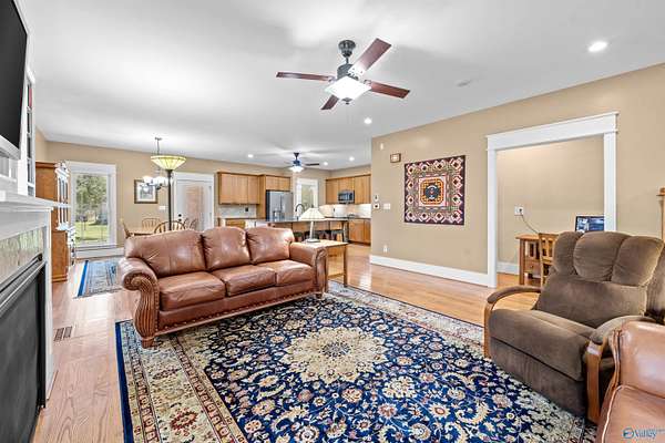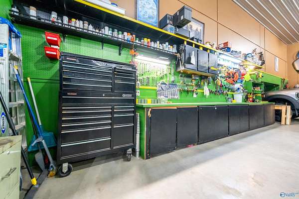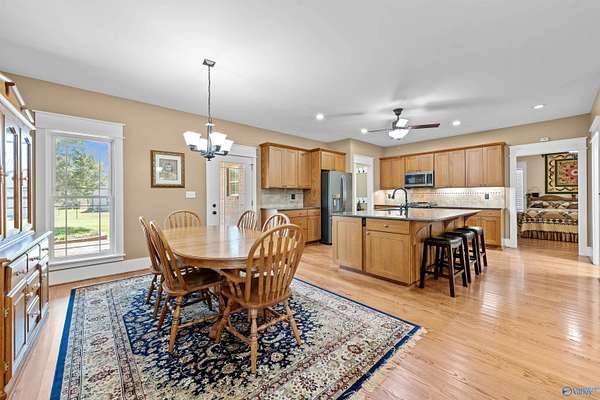 Beautiful full brick 2-story home situated on 3 private acres, offering approximately 3,975 sq ft of well-designed living space plus an impressive 40x60+ detached workshop/garage with RV storage. This 4-bedroom, 4-bath (4th bath in garage/workshop) home features 3/4" tongue and groove oak hardwood floors throughout the main level, smooth ceilings, and spacious living areas perfect for both everyday living and entertaining. The oversized 35x18 rec room provides endless flexibility, bonus room and dedicated office are framed for closets, offering the potential for additional bedrooms. Built-in tornado shelter located in the MBR closet for added peace of mind. Golf course access