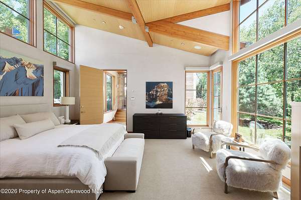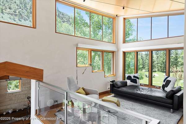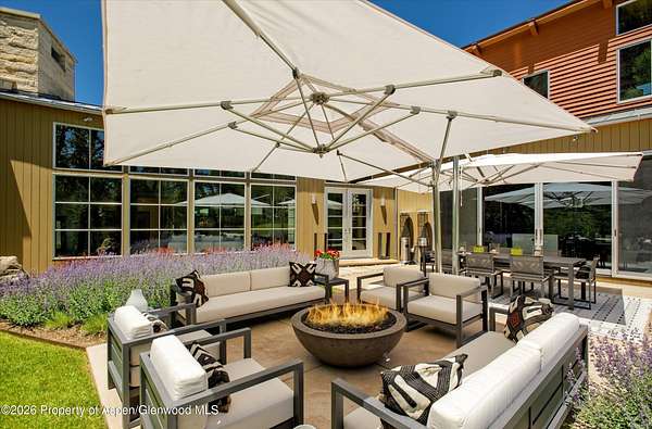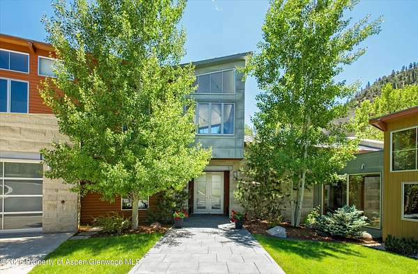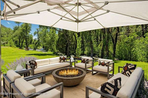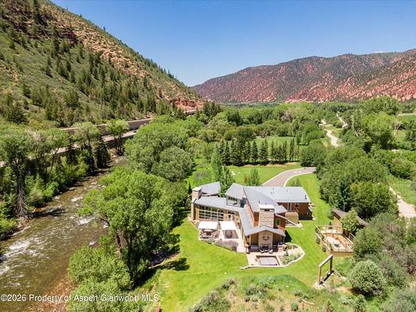 A striking contemporary home by David Johnston, set along a private stretch of the Roaring Fork River and thoughtfully designed to capture the surrounding landscape, available to rent for a month over the holidays in December/January. Designed for both gathering and retreat, the home features a spacious great room ideal for hosting, a main-level primary suite, and three additional guest suites upstairs. Enjoy private river frontage with direct access to fly fishing, along with immediate access to the Rio Grande Trail just outside the front door, groomed in the winter for nordic skiing. The kitchen and great room open seamlessly to a terrace complete with a hot tub, pizza oven, outdoor fireplace, fire pit, BBQ, and outdoor heaters; an ideal setting for winter evenings. A lower-level theatre room with full bath provides additional space to relax and unwind. Located just 20 minutes from Aspen Mountain and Snowmass Village, this is a rare opportunity to enjoy a thoughtfully designed riverfront home during the most sought-after time of year.
