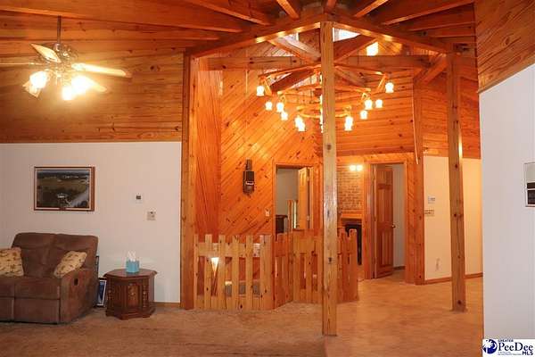 A MUST SEE! This one-of-a-kind, custom built property has a unique layout that exhibits charm and character. With 3 bedrooms and 2.5 bathrooms, this residence offers plenty of room for comfortable living while sitting on 1.8 acres. Step inside the main level to discover freshly painted interiors that create a bright and inviting atmosphere with pine tongue and groove ceilings. A large open concept living room/kitchen/dining space for entertaining. There is an office and 1/2 bath on this floor as well. A beautifully crafted spiral staircase connects the living spaces, maximizing the home's unique flow. Working intercom system from main floor to bottom. On the bottom level you can find 3 bedrooms and 2 full bathrooms. Each room with a walk in closet and his/her closet in the master. Large utility room with refrigerator and storage closet also on the bottom level. The sunroom is another standout feature, flooded with natural light, making it the perfect spot for relaxation or enjoying your morning coffee. Significant updates include a new roof installed in 2020 and a new HVAC unit added in 2021. For those with hobbies or work needs, a wired 3-bay workshop awaits, providing ample space for projects and storage. This home is move-in ready, allowing you to settle in and start enjoying its unique features immediately. Don't miss the opportunity to make this charming property your own!