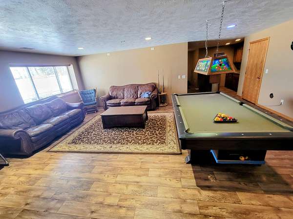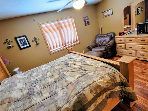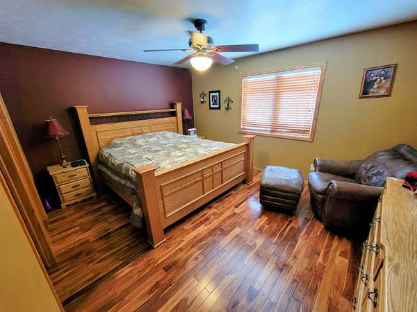 Nestled on 1.88 acres in a very private setting, this spacious ranch home offers comfort, space, and style. Featuring 4 bedrooms and 3 full baths, the home includes a primary suite with master bath & walk-in closet. Main-floor laundry, vaulted ceilings, and beautiful walnut hardwood floors. The custom hickory kitchen with breakfast bar flows into the dining room with sliding doors to the deck. Additional highlights include a large game room, storm shelter, and a generous family room with fireplace and wet bar-perfect for relaxing or entertaining.