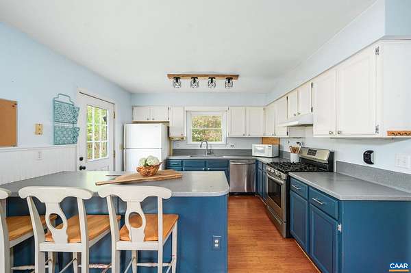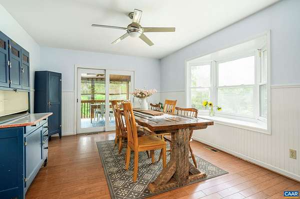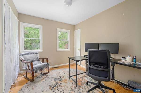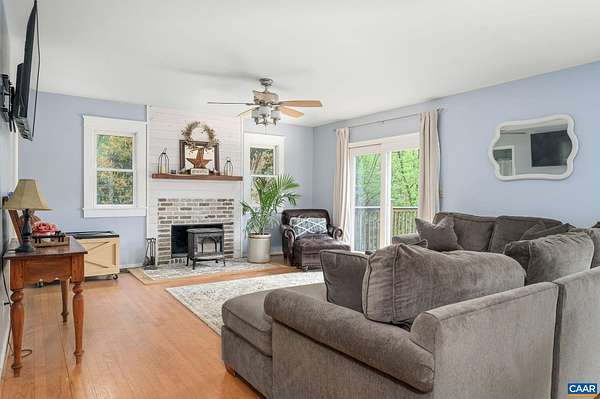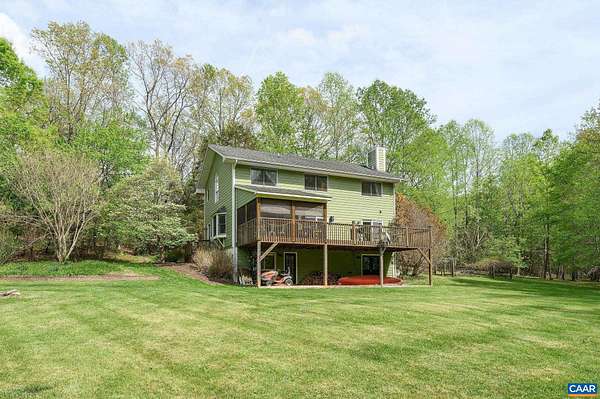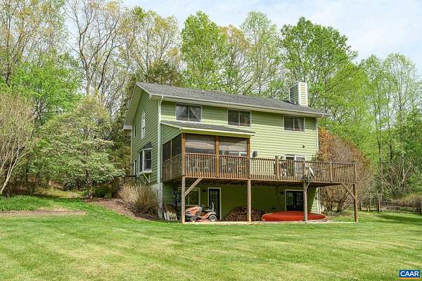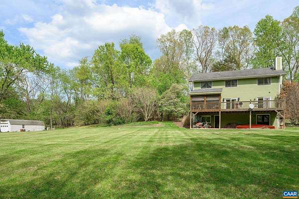 Set on 3.3 private acres just 3 miles from the heart of Batesville, this inviting home offers a rare blend of usable land, natural beauty, and a comfortable, functional layout. Hardwood floors span the main level, where the kitchen flows easily into a dining space with bay window and direct access to a fantastic screened porch and spacious deck—perfect for taking in the expansive, tree-lined backyard. The living room features built-in cabinetry and a wood stove, while a separate family room is filled with natural light. A main-level bedroom or office and full bath provide flexible living options. Upstairs, the primary suite includes a vaulted ceiling, walk-in closet, and ceramic-tiled bath, along with three additional bedrooms with generous closets and an updated hall bath. The terrace level adds a finished rec room, laundry, fifth bedroom, and unfinished storage. One the side-yard, there's a large workshop/storage shed as well. The setting is peaceful and private, with open lawn and mature trees, all within easy reach of Batesville and a short drive to Charlottesville.
