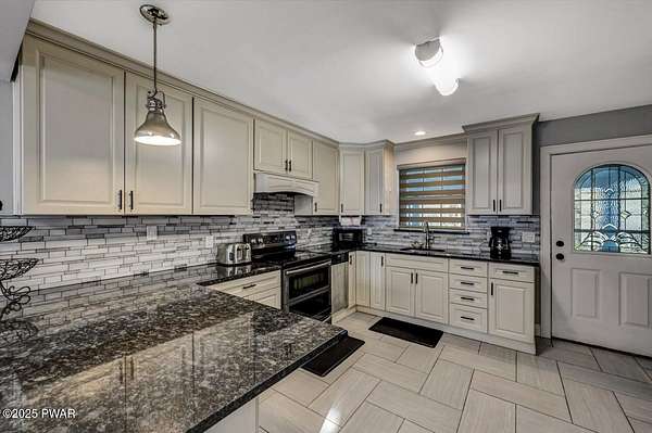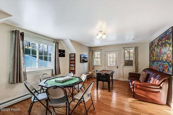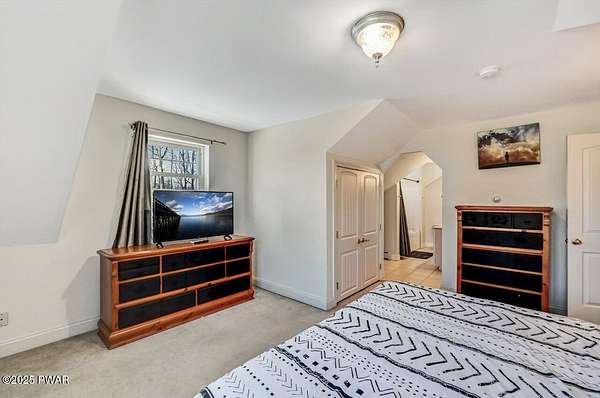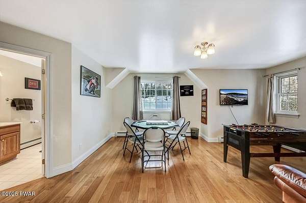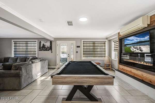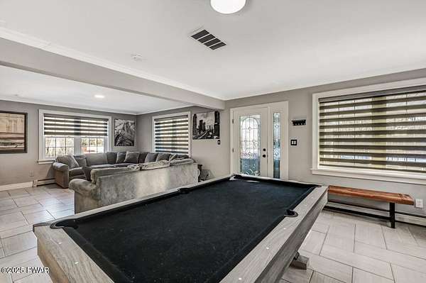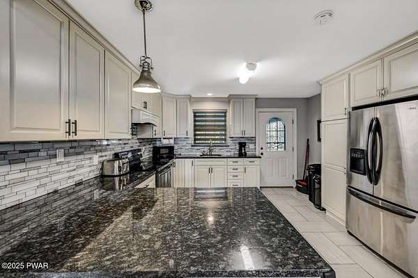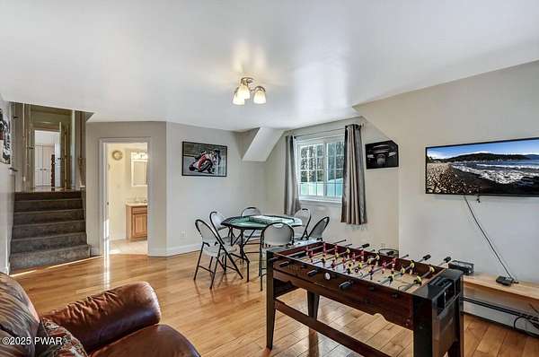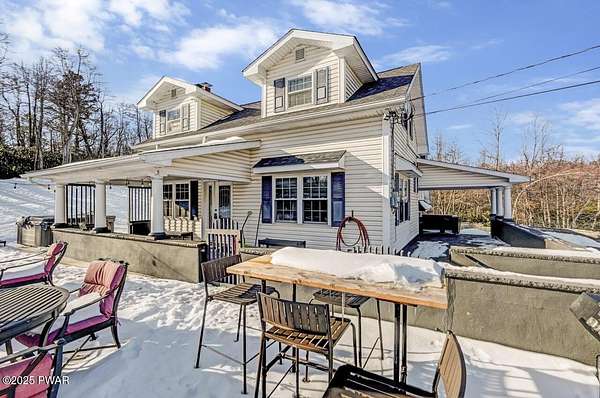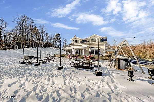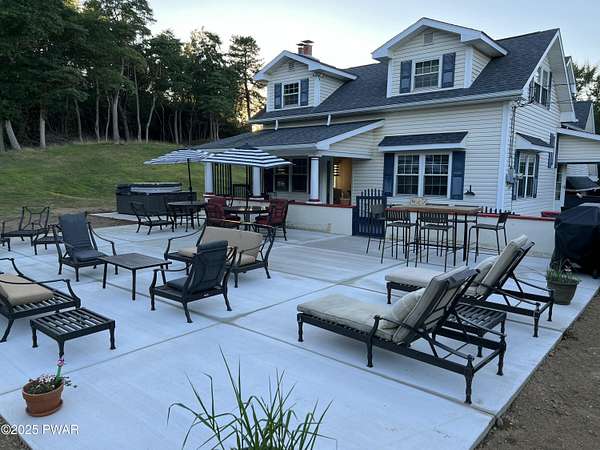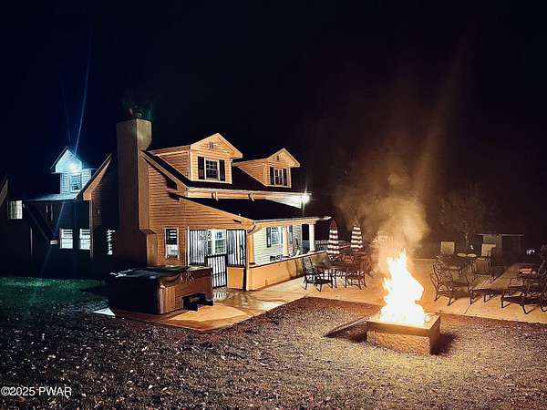 Find your oasis in the Pocono Mountains! NO HOA and Short-Term Rental friendly (with proper permits)!! Located on 4.3 acres, this cape is secluded off the road via the long paved private driveway. The home has 4 bedrooms, 2.5 bathrooms, updated kitchen with granite countertops and stainless-steel appliances. The living area is open and large. The bedrooms are located upstairs with another living area that is currently set up as a gaming and recreation area. There is also a laundry room. There are Mitsubishi Split units throughout the home, which have both heating and air conditioning. The main heating source are baseboards. The backyard is set up for entertainment: There are almost 1600 square feet of 6'' high strength finished concrete; Restoration Hardware heavy duty outdoor furniture with custom outdoor bar; not to forget, the 6 person hot-tub. This comes in handy especially after a long day of skiing. There is also a private trail on the property! The grassy field is great for a soccer match, kickball, or a round of tag. The location is extremely convenient from NYC and Philly Metros. The property is located just minutes off the Interstate, and just minutes from local area attractions: skiing, water parks; 5 minutes to Kalahari, a Casino, Pocono Raceway, shopping, etc. This is an amazing spot to feel like you are in the middle of nowhere, while also being a stone's throw away from everything. Come check out this unique property today.