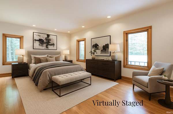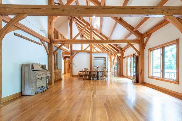 Stunning Timber Frame Home on 5.93 Wooded Acres - Eastside Location Near IU Experience timeless craftsmanship and modern comfort in this beautifully constructed timber frame home, where soaring ceilings, exposed beams, and rich wood finishes create a warm, inviting atmosphere. The charming brick exterior gives only a hint of the breathtaking interior--you truly have to see it in person to appreciate the quality and design. Perfectly nestled on 5.93 peaceful, wooded acres, this meticulously maintained property offers the best of both worlds: privacy and space, just minutes from Indiana University, top-rated schools, shopping, restaurants, golf, and the YMCA. As autumn arrives, the property transforms into a private sanctuary of brilliant fall foliage, offering spectacular views from every window and the back deck. The land behind the home has recently been designated for a future nature preserve or park, ensuring lasting tranquility and protection of the surrounding natural beauty. Inside, the open-concept layout showcases hardwood floors throughout, a light-filled living room, and a generously sized eat-in kitchen--perfect for entertaining or everyday living. The home offers abundant built-in storage throughout, including extensive kitchen cabinetry, custom office built-ins, a well-equipped laundry room with utility sink, a half bath for guests, and ample closet space in every area. The main-level primary suite is a true retreat, featuring a jetted tub, step-in shower, and expansive walk-in closet. Upstairs, you'll find three spacious bedrooms--one with an en-suite bath--a second full bathroom, and a versatile loft overlooking the living room, ideal for a reading nook, playroom, or second office. The walk-out basement offers incredible flexibility with a fifth bedroom, full and half baths, a second fully equipped kitchen, and a spacious recreation room--perfect for multi-generational living, hosting guests, or creating the ultimate game-day space for IU sports fans. Invite friends over to cheer on the Hoosiers in comfort, surrounded by natural beauty and timeless craftsmanship. Additional features include: Dedicated office with built-in desk Solid 6-panel wood doors throughout Back deck overlooking the private, wooded landscape Exceptional quality construction and meticulous care Super high energy efficiency with stress-core foam insulation in walls and ceiling A floor plan is attached, but to truly appreciate the craftsmanship, thoughtf