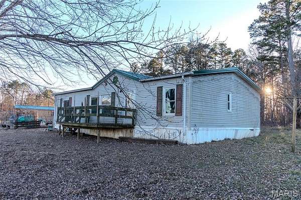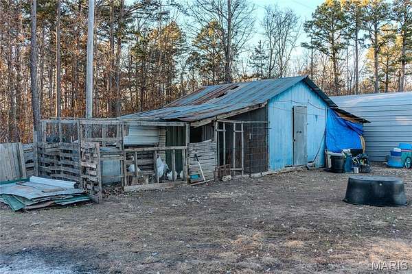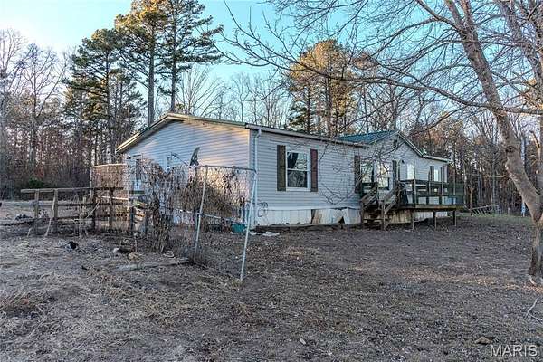 Welcome to this well-loved, move-in ready 18.5-acre hobby farm with easy access as the private driveway meets a paved highway. The property backs directly to the Angeline Conservation Area, offering thousands of acres of MDC land to enjoy unlimited hunting, horseback riding, hiking, abundant wildlife, and endless outdoor recreation right out your back door. The 3-bedroom, 2-bath home features an open living, dining, and kitchen layout filled with natural light from large windows and glass doors that showcase beautiful farm views. Enjoy outdoor living from both the spacious front deck and back deck, perfect for relaxing or entertaining. The land is thoughtfully set up for livestock and self-sufficiency with new perimeter fencing and a fully fenced house yard. The property is cross-fenced into three pastures, including approximately 0.5 acres, 2.5 acres, and a large 13-acre main pasture complete with a pond, automatic waterer, and mature oak trees providing shade. A barn offers space for equipment or hay storage, and a chicken coop is already in place. Additional highlights include peach and plum trees, established blackberry, raspberry, and boysenberry patches, and a large garden area with soil and layout ready to continue growing. Recent updates include a roof replaced approximately 2-4 years ago and a brand-new well pump installed in January 2025. Perfect for horses, cattle, sheep, goats, chickens, or anyone seeking a peaceful country lifestyle with direct access to conservation land and endless outdoor opportunities.