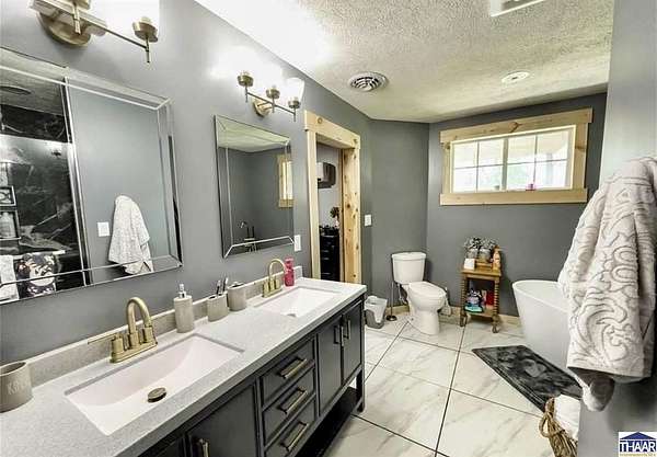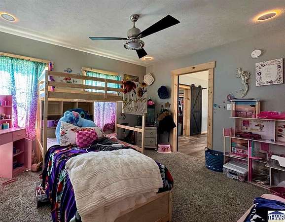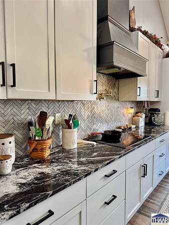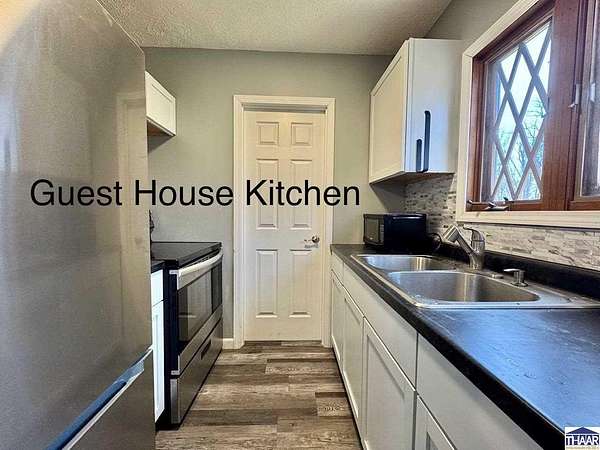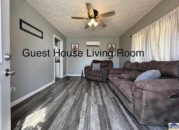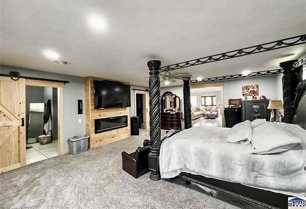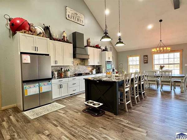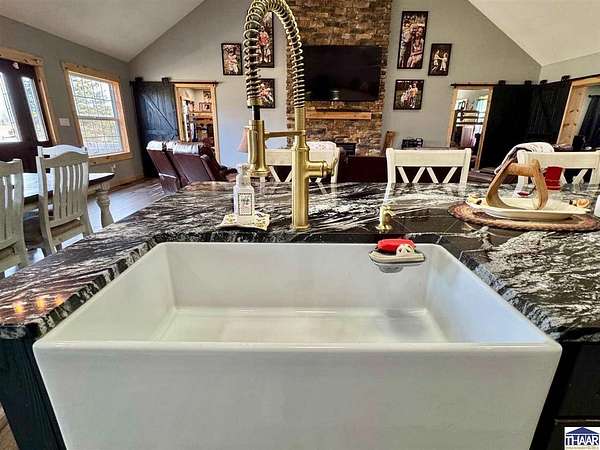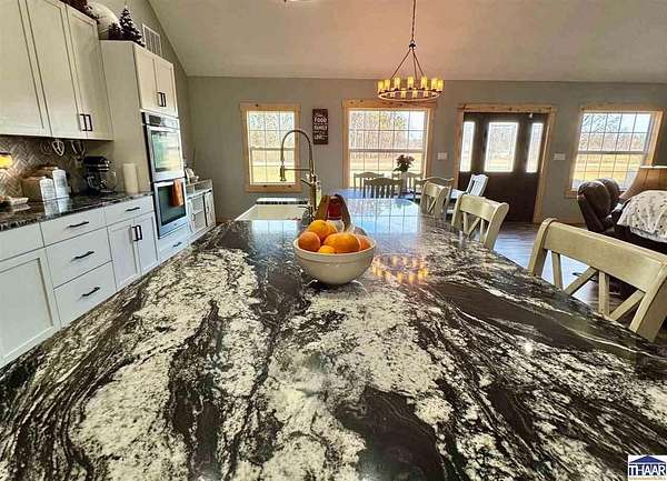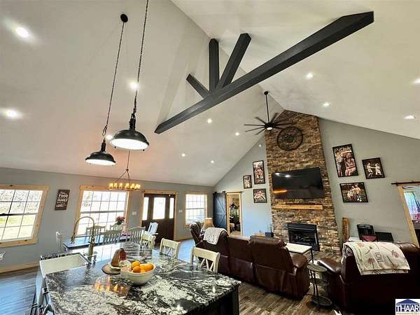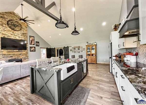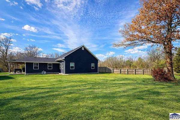 This stunning property showcases exceptional wow factor, thanks to its custom design and impressive features. Situated on 3 acres, this newer home boasts 2 x 6 exterior stud walls, a 4+ car garage, fully fenced yard, and charming guest house. Highlights include a striking floor-to-ceiling flagstone fireplace, expansive great room/kitchen/dining room combo with cathedral ceiling, gorgeous kitchen with granite countertops, large center island, white shaker cabinets, farm sink, herringbone tile backsplash, pot filler, double oven, and spacious walk-in pantry. The primary suite offers a spacious walk-in closet and impressive en suite with double vanity, soaker tub, and tiled shower with waterfall shower head. Additional bedrooms feature generous proportions, with a Jack-and-Jill bath boasting double vanity. With so many exceptional features, a personal tour is a must.