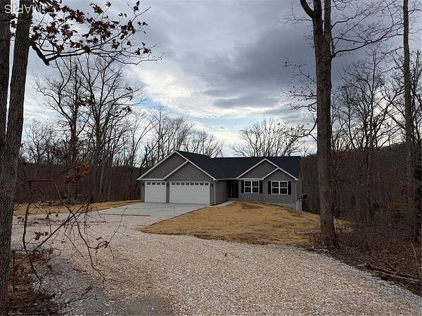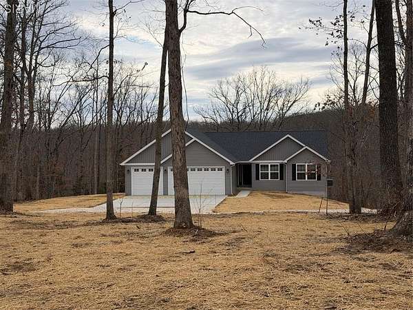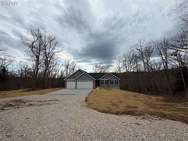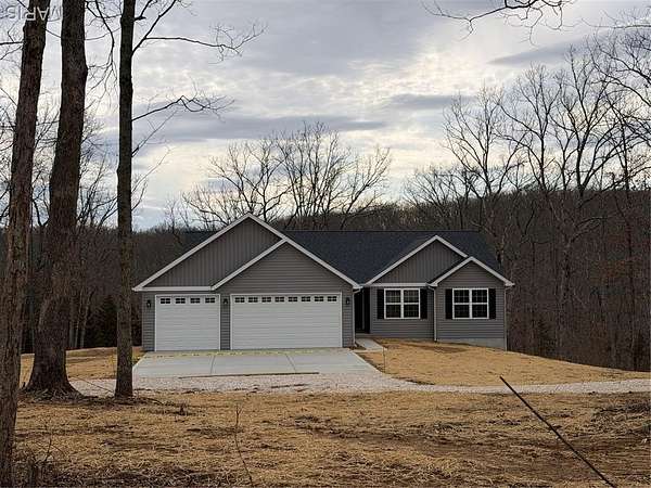 Beautiful new home situated on 3.3 acres! This 1,595 sq. ft. ranch backs to wooded privacy and offers a wonderful view of the surrounding forest from the covered rear deck. Inside, you’ll find luxury vinyl plank flooring throughout, a 12-foot vaulted ceiling in the living room, and beautifully tiled ceramic showers. The home also includes a 3-car attached garage, main-floor laundry, and a walk-out basement with plumbing rough-in ready for future expansion. The kitchen/dining combo shines with granite countertops, canned lighting, shaker soft close cabinets and stainless-steel Whirlpool appliances & sliding door to back deck overlooking the hills for the perfect fall views & spacious backyard. The primary en-suite boasts a separate tiled shower & soaking tub with plenty of natural lighting. Schedule to tour it today!