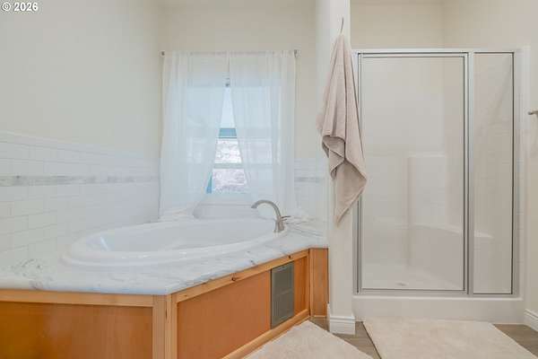 - Ceiling Fan, High Ceilings, Laundry, Luxury Vinyl Plank, Soaking Tub, Vinyl Floor, Washer Dryer