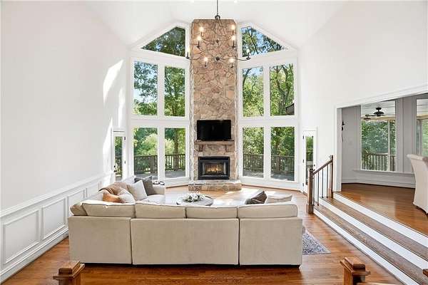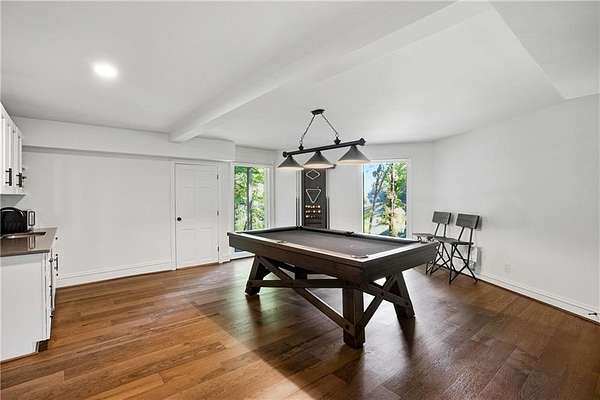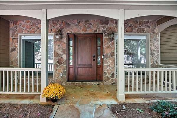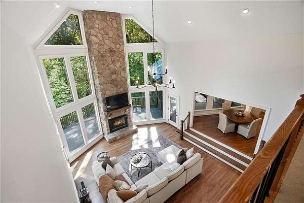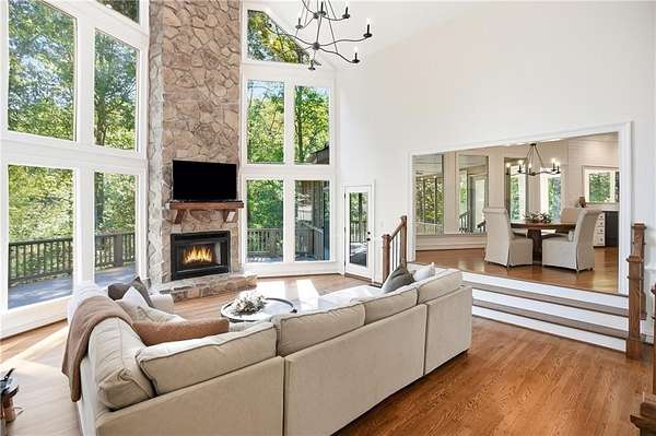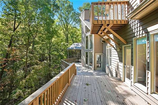 Completely reimagined for longevity and modern comfort, this 3 acre private residence showcases recent renovations designed to last for generations-including fully rebuilt back decks supported by steel piers, custom stone retaining walls along the driveway, a new roof (November 2022), and new windows installed within the past four years. ALL FURNITURE CONVEYS. Inside, a new gas fireplace now anchors the great room, with the option to extend the gas line to the kitchen for a future gas range. Every bathroom has been thoughtfully renovated within the past four years, ensuring a cohesive, move-in-ready experience throughout. Even the exterior has been carefully maintained, with screens placed over the front water features for the fall and winter seasons. Set on Creek 6 golf green, this beautifully updated 5-bedroom, 5.5-bath home perfectly blends mountain elegance with enduring craftsmanship. Surrounded by mature hardwoods and thoughtful landscaping, the property offers both privacy and presence, featuring stone pathways that wind through the grounds and two tranquil water features welcoming you home. The primary suite on the main level is a true retreat, complete with a bonus room-ideal as an office, nursery, or fitness space-and a spa-inspired bath with soaking tub, tiled walk-in shower, and spacious closet. The great room features two-story ceilings, a floor-to-ceiling stone fireplace, and walls of windows showcasing breathtaking forest views. From here, step into the heated and cooled sunroom, a glass-wrapped sanctuary among the trees, or relax on the screened-in porch and multiple decks designed for effortless indoor-outdoor living. The expansive kitchen provides generous counter space for the chef of the house, while beautiful hardwood floors set a warm, refined tone across the main level. Upstairs, two spacious bedrooms each offer private decks and renovated ensuite baths, connected by a cozy loft perfect for reading or quiet reflection. On the terrace level, enjoy a second living area with wet bar and a versatile bunk room/flex space with custom built-ins-ideal for guests or creative pursuits. With its rare 3-acre setting, enduring updates, and panoramic views of the Creek course, this home stands among Big Canoe's most distinctive offerings-where luxury and longevity meet in perfect balance. Big Canoe spans 8,000 acres, with over one-third preserved as parks and green space, and is certified as a Nature Preserve by Georgia Audubon. Residents enjoy access to golf, tennis, pickleball, bocce, a 13,000-square-foot Wellness Center, dog parks, playgrounds, lakes, and 25 miles of scenic hiking trails-with flexible membership options or pay-as-you-go access. Buyer to verify all information and dimensions deemed important.