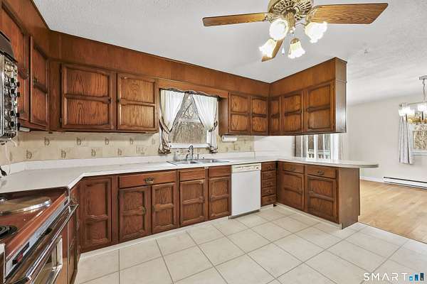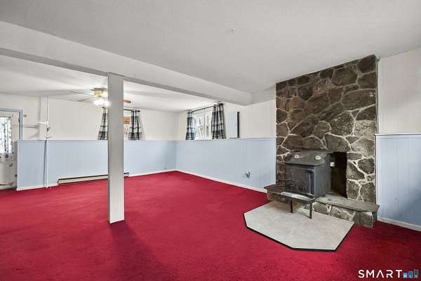 Rural Surroundings with Commuter friendly access to CT RT 2 to Hartford and Norwich/New London Areas offered with this oversized 56' x 28' Bilevel Design home featuring a legitimate four bedroom floor plan on the 1568 SF main living level and being offered with an abutting 2 acre "lot of record" to yield a 4 acre homesite. Open floor plan design Kitchen, Dining Room, and Living Room appointed with hardwood floors, masonry fireplaced Living Room, OH ceiling fan/light, and sliders to 14''x 20' private rear deck. Roomy kitchen with loads of working counter space, peninsula cabinets/serving counter, and work desk area! Four main level bedrooms include Primary BR with full shower stall bath, w/w carpeting, OH ceiling fan/light, and two closets! Three additional Bedrooms with w/w carpeting, 2 with OH fan/lights. All sharing a center hallway full tub/shower bathroom! Lower level offer 390 SF finished 19.6"x 25.4" family room appointed with a raised hearth fieldstone fireplace with wood burning stove insert and an adjoining 1/2 bath! Lower level also has spacious laundry-utility-storage room and 2 car under garage bays! This home needs some updating and is priced with consideration of the cost of improvements to make this country jewel sparkle!