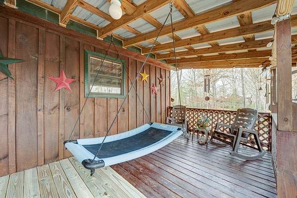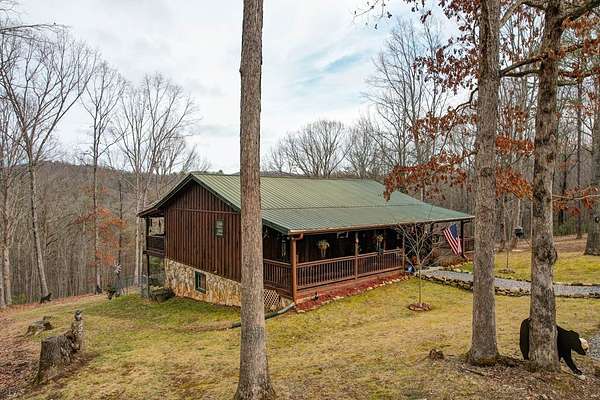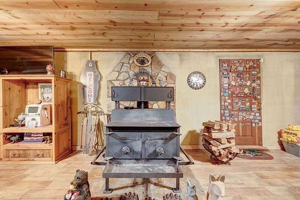 Living is easy in this rustic, ranch style cabin that features 3 bedrooms, 2 bathrooms and 2,240 sq ft of living space! Cozy up by the gas log fireplace or out on the wrap around deck and watch the deer stroll through at all hours of the day. Three bedrooms and a bathroom are on the main floor with a massive finished basement with a full bathroom and laundry area. This space is perfect for entertaining with game tables and plenty of room to add additional sleeping/flex rooms. There's also a wood-burning stove! Easy access with a circular driveway and there's a fenced in back yard area too. The mountain views won't disappoint either with views in the front and back of the property. This home does need a new HVAC system and some work on the back deck/stairs but would make a great Full Time living OR STR/vacation home.