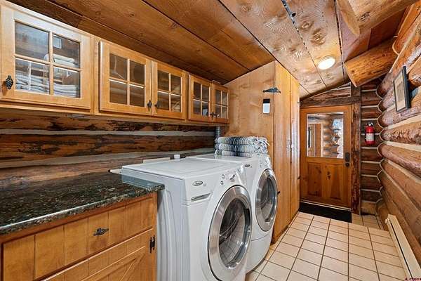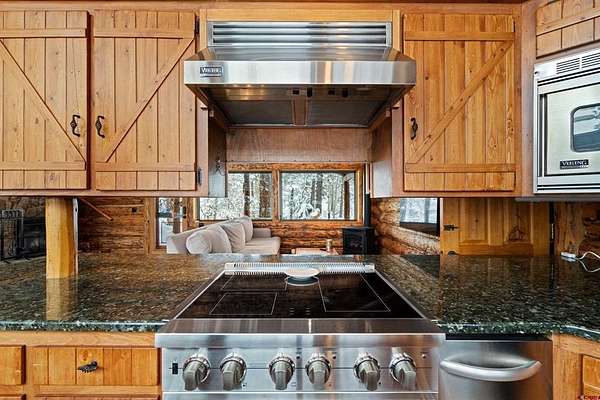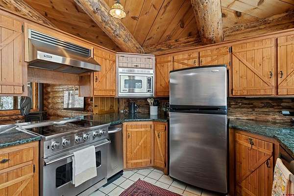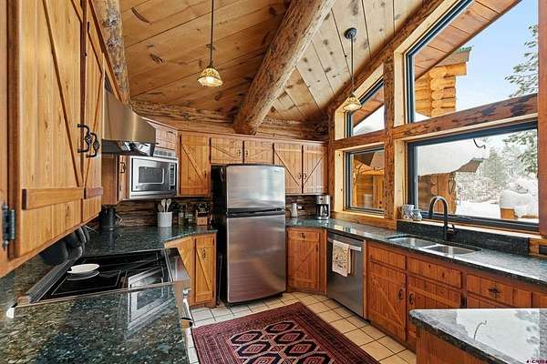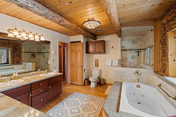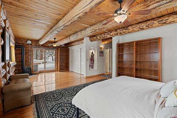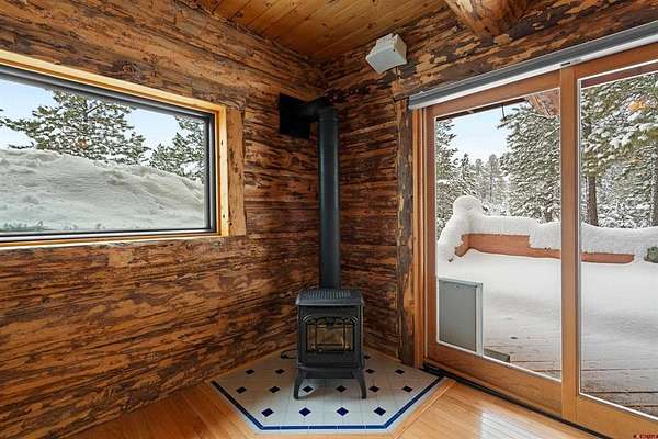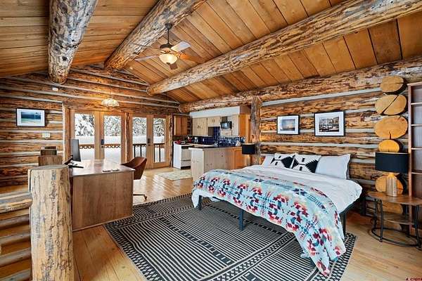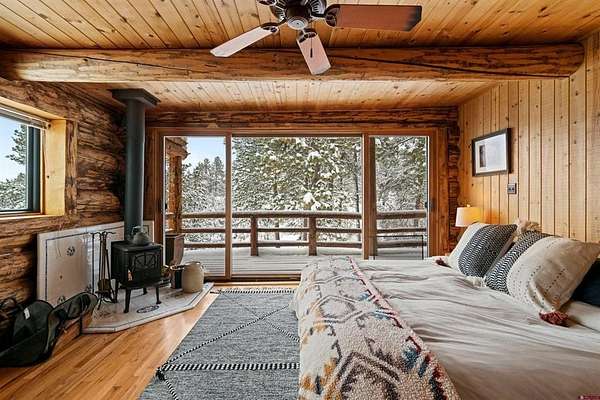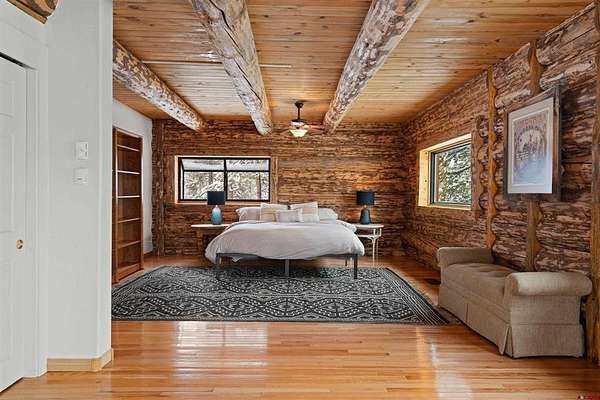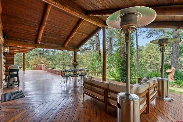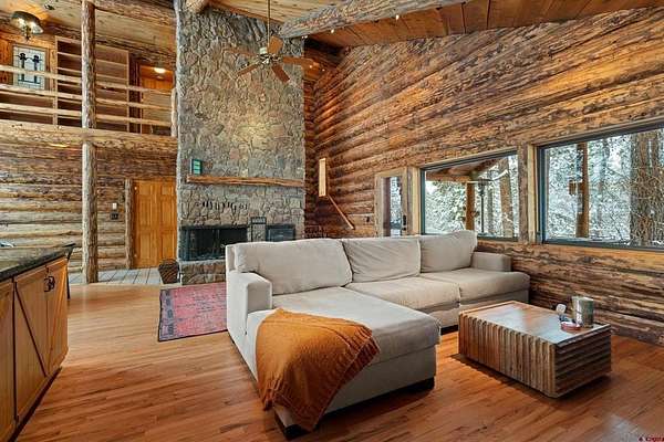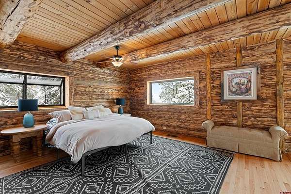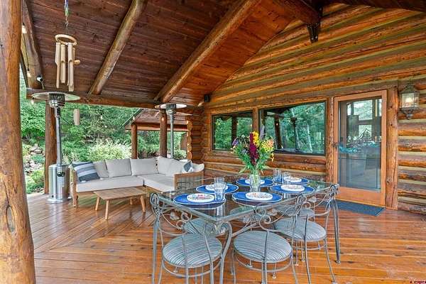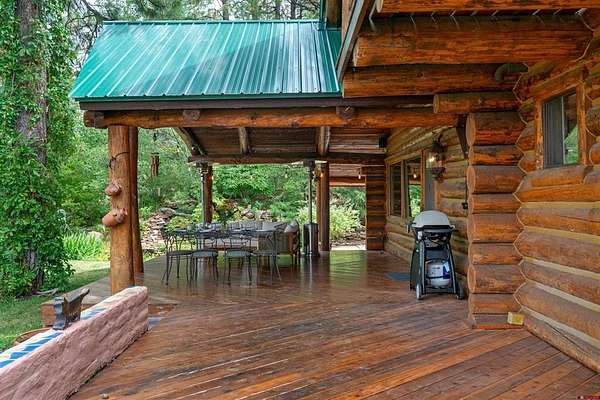 Lindsey Breed, The Wells Group of Durango, LLC, C: 970-749-6246, lindsey@wellsgroupdurango.com, www.crenmls.com: Stunning Larry Barnes–designed log retreat just minutes from town, beautifully sited on more than 4 acres with serene gardens, multiple water features, and views of the La Plata Mountains. The entire log exterior has been re-stained and re-chinked, and a new Trex deck welcomes you to the front of the house. With many other recent upgrades, this home has been well cared for. Inside, the home offers an open floor plan that highlights impressive log beams and rich wood details. The living area is warm and inviting, anchored by a wood stove and a floor-to- ceiling moss rock fireplace. The home has abundant natural light thanks to the large windows that capture sweeping views and the lush grounds. The kitchen boasts granite countertops, stainless-steel appliances. Two large bedroom suites each include their own stove for extra ambiance and comfort, hardwood floors, and sliding glass doors that lead to the decks. The primary suite includes a steam shower for a spa-like retreat. A covered back deck creates a private outdoor oasis, perfect for relaxing or entertaining, overlooking the picturesque backyard. A separate fenced area with raised garden beds provides an ideal spot for growing vegetables and herbs, a green thumb’s dream. The oversized two-car garage includes two storage rooms and space for a workbench. Above the garage, a charming guest house features an open living area with a kitchenette, plus a studio bedroom and bathroom. Another programable stove fireplace keeps this area warm. Additional amenities include a paved driveway and large front parking area, a newer metal roof that facilitates winter snow removal, central water and HOA road maintenance. This exceptional property combines thoughtful design, upgraded exterior maintenance, and idyllic outdoor living—don’t miss the chance to make it yours.