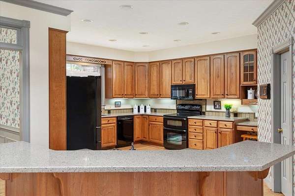 Consider yourself at home in this expansive 5-bedroom, 5.5-bath brick estate on 1.75 acres in the highly desirable Cliffside Subdivision. Enjoy exclusive access to a private 13-acre park with approximately 3/4 mile of Shenandoah River frontage--perfect for fishing, picnics, and peaceful afternoons by the water. With over 7,500 finished sq. ft. across three thoughtfully designed levels, this custom-built home offers incredible space, comfort, and flexibility--including a main-level private in-law suite with its own entrance, full kitchen, living room with fireplace, and bath. The gourmet kitchen features granite countertops, custom cabinetry, stainless steel appliances, a large island with prep sink, and dining area, flowing seamlessly into the spacious family room with built-ins and gas fireplace. Upstairs, the luxurious primary suite includes a fireplace, multiple closets, and a spa-like bath. A finished walkout lower level provides a rec room, bar, full bath, and storage. Extras include a whole-house generator, oversized garage, covered front porch, rear deck, workshop, and landscaped grounds. Disclosure: 3-bedroom septic.