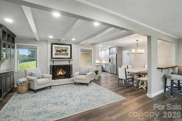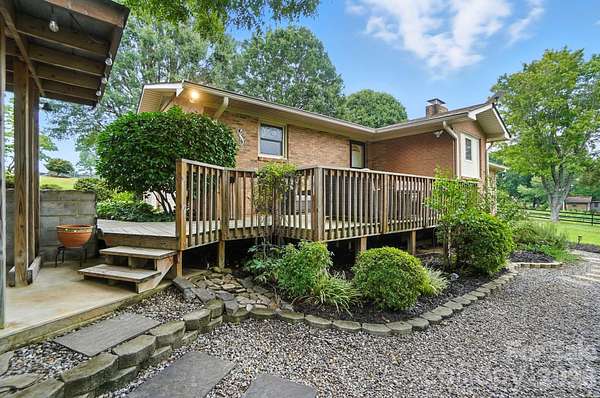 Bring your horses and embrace the country lifestyle in this beautifully remodeled all-brick ranch set on 6.8 acres in Mooresville. Backing up to the original Johnson Dairy Farm property, this rare find offers the perfect setting for equestrian living and includes two separate parcels. The land has been thoughtfully laid out with four fully fenced pastures, providing ample space for grazing, rotation, and training. Surrounded by wonderful neighbors who value the peaceful, rural setting, this home offers both privacy and a true sense of community. Inside, you'll find stylish LVP flooring throughout, a spacious laundry room, and abundant storage, plus a 424 sq. ft. unfinished walk-in basement that's perfect for tack, tools, or extra storage. Equestrians will love the 3,000 sq. ft. metal barn, complete with 2,000 sq. ft. of open storage and two oversized exterior horse stalls. With wide-open acreage, there's plenty of room to ride, train, or simply relax and enjoy the quiet countryside. Perfectly situated between downtown Mooresville and downtown Davidson, yet outside the city limits with county-only taxes and no HOA or restrictions, this property combines convenience with the freedom to create your dream homestead. Whether you're looking for a place to keep your horses, build a sustainable lifestyle, or simply enjoy a private retreat, this home offers it all.