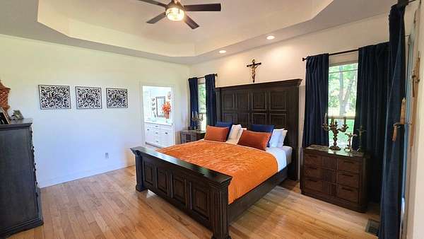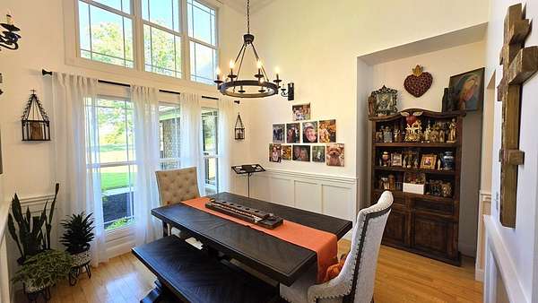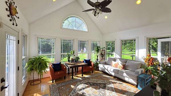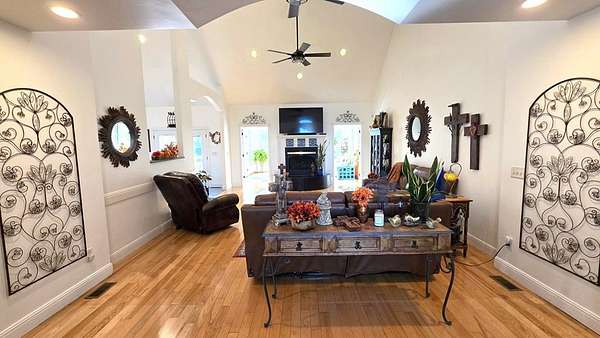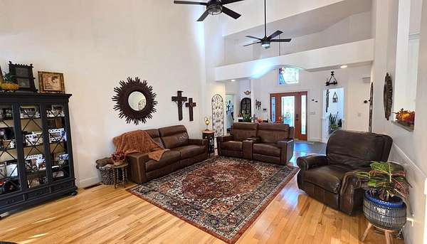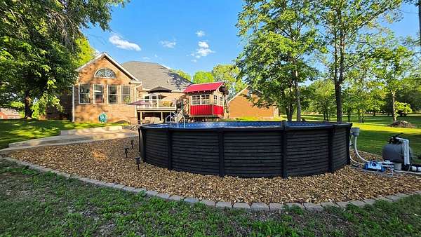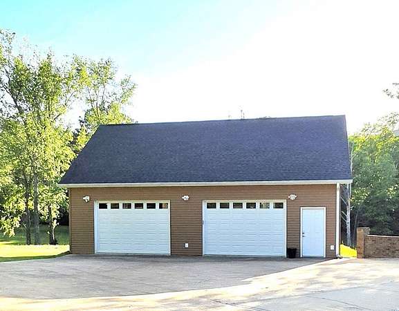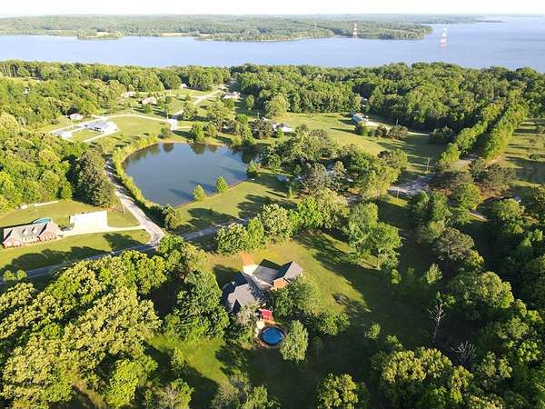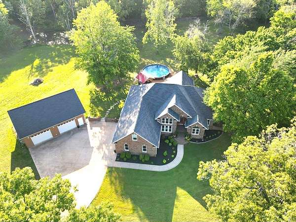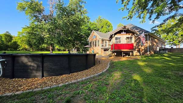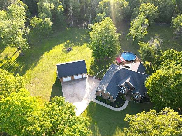 Custom-built brick home situated on 9.7 acres, located less than 1 mile from a public boat ramp. This 4-bedroom, 2 bath home features a 3-year-old roof and has been freshly painted with updated lighting. Interior features include white ash wood flooring, ceramic tile, granite countertops, vaulted and trey ceilings, and a gas log fireplace. The home offers a sunroom, formal dining room, and an outdoor sitting room with updated electrical. The spacious primary suite includes an office area, walk-in closet, and tile shower. Exterior amenities include an above-ground pool, pond, garden space, and plenty of room to enjoy the outdoors. Property also features a 2-car attached garage and a 40x30 detached 2-car garage/shop with loft space. Additional highlights include Low-E tilt windows and ample storage throughout. Ideal for those seeking privacy, acreage, and convenient access to the water! Call today for a showing!