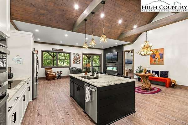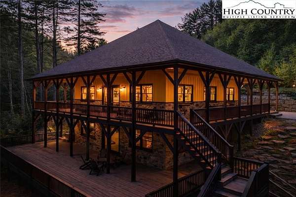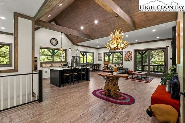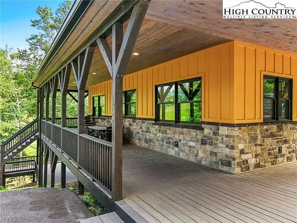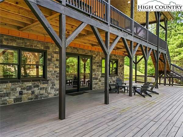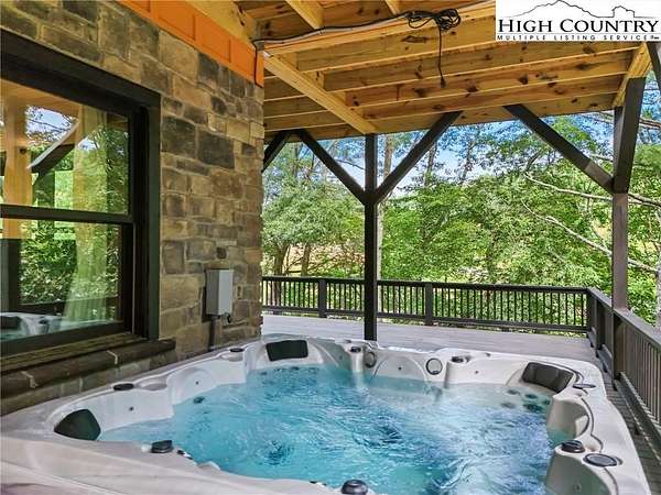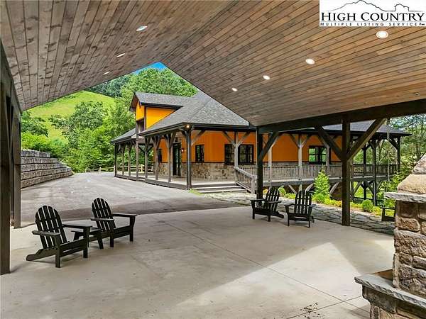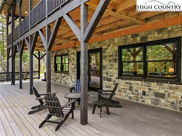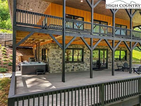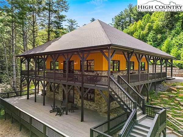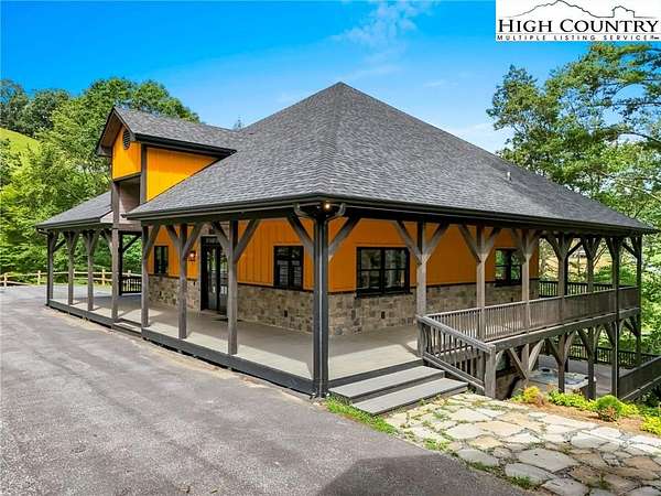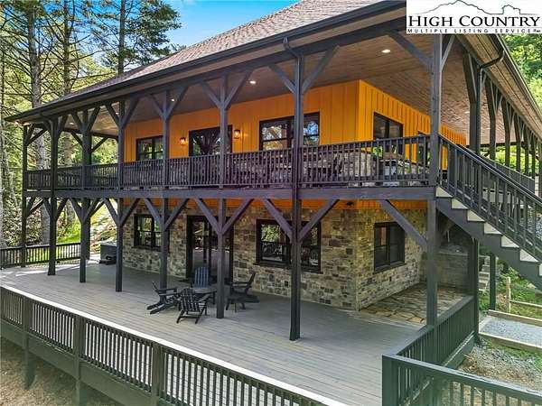 Situated on 2.13 acres, this exceptional 4 bedroom, 4 bath fully furnished residence offers almost 3,100 square feet of refined living space. Built in 2022, this home thoughtfully blends modern craftsmanship with elevated mountain style. The home features an open concept main living area for both intimate gatherings and large scale entertaining. The spacious kitchen offers generous workspace, seamlessly anchoring the heart of the home. Well appointed bedrooms and baths provide comfort and privacy for you and your guests. Outdoor living is where this property truly distinguishes itself. Nearly 2,000 square feet of covered decking creates multiple spaces for dining, relaxing, and enjoying the surrounding natural setting year round. A detached entertainment pavilion, complete with an outdoor fireplace, offers a resort style atmosphere for those cool mountain evenings. A beautiful waterfall feature adds a tranquil focal point, enhancing the sense of a true mountain retreat. With expansive outdoor living, modern construction, and acreage rarely found in newer homes, this property presents a compelling opportunity as a full time residence, retreat, or second home. Properties offering this level of privacy, outdoor entertaining space, and recent construction are limited. Owner may consider selling the lot below this one, Lot 1 at 1.82 acres, if a buyer is interested in more acreage. Schedule your showing today and experience the lifestyle this mountain retreat was designed to offer.