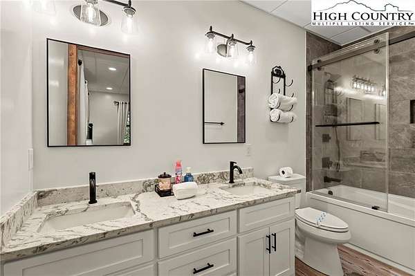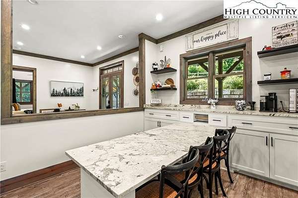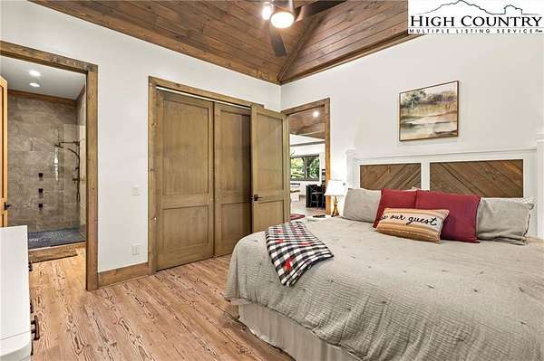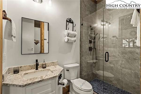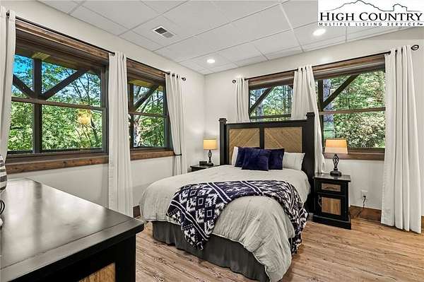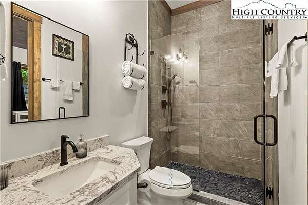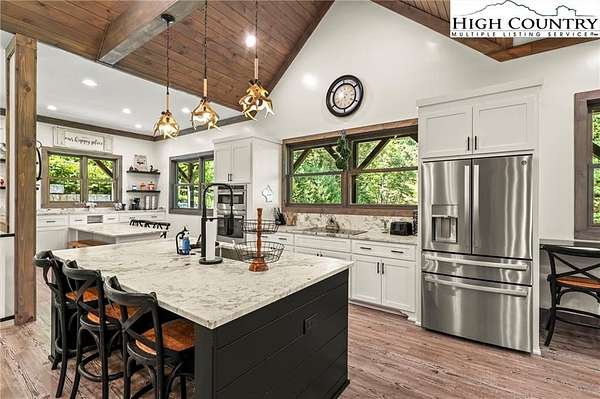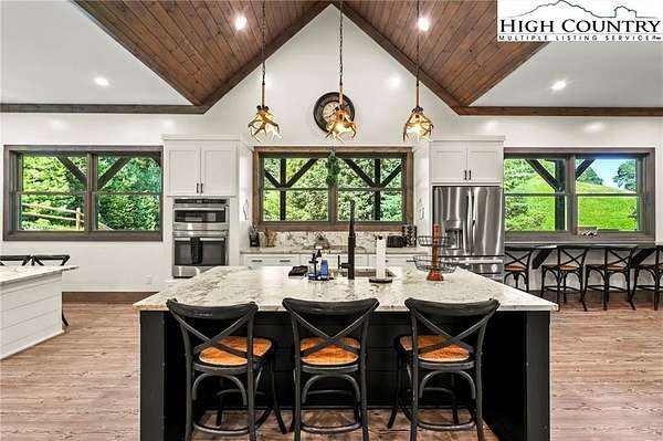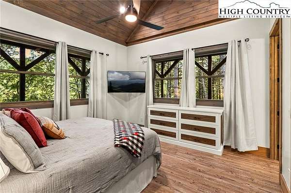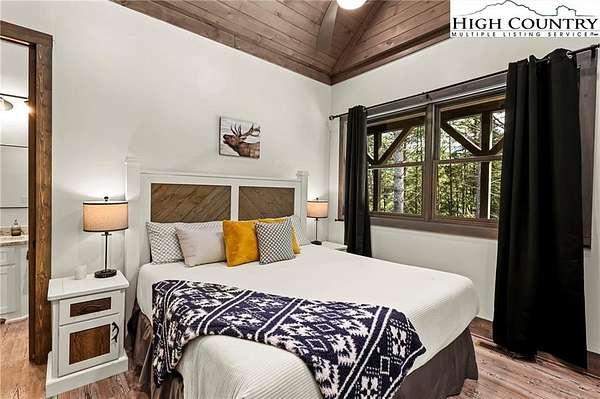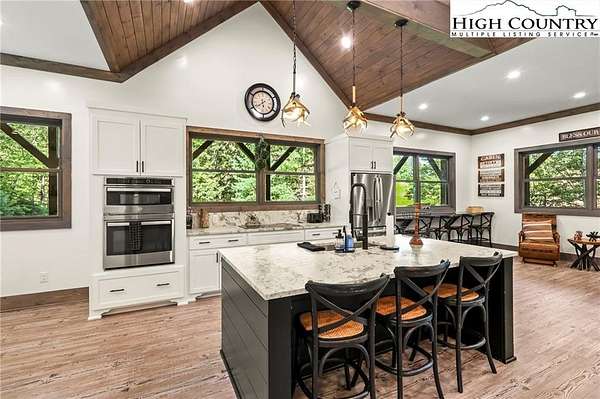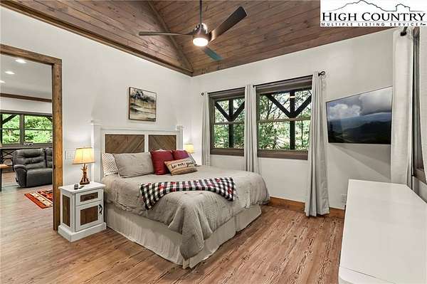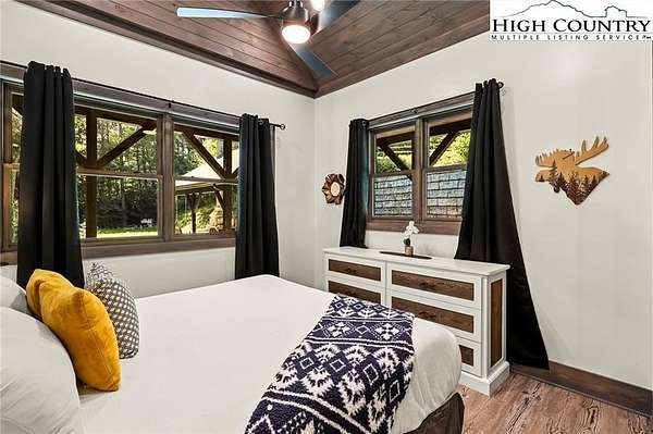 Situated on 2.13 acres, this exceptional 4 bedroom, 4 bath fully furnished residence offers almost 3,100 square feet of refined living space. Built in 2022, this home thoughtfully blends modern craftsmanship with elevated mountain style. The home features an open concept main living area for both intimate gatherings and large scale entertaining. The spacious kitchen offers generous workspace, seamlessly anchoring the heart of the home. Well appointed bedrooms and baths provide comfort and privacy for you and your guests. Outdoor living is where this property truly distinguishes itself. Nearly 2,000 square feet of covered decking creates multiple spaces for dining, relaxing, and enjoying the surrounding natural setting year round. A detached entertainment pavilion, complete with an outdoor fireplace, offers a resort style atmosphere for those cool mountain evenings. A beautiful waterfall feature adds a tranquil focal point, enhancing the sense of a true mountain retreat. With expansive outdoor living, modern construction, and acreage rarely found in newer homes, this property presents a compelling opportunity as a full time residence, retreat, or second home. Properties offering this level of privacy, outdoor entertaining space, and recent construction are limited. Owner may consider selling the lot below this one, Lot 1 at 1.82 acres, if a buyer is interested in more acreage. Schedule your showing today and experience the lifestyle this mountain retreat was designed to offer.