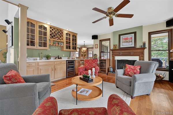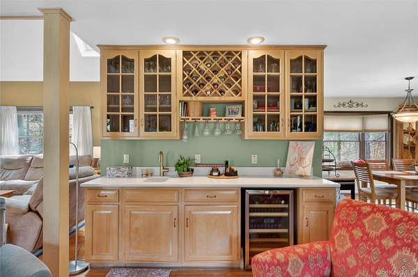 - Beamed Ceilings, Cathedral Ceiling(s), Chandelier, First Floor Bedroom, First Floor Full Bath, Formal Dining, Galley Type Kitchen, High Ceilings, Open Floorplan, Primary Bathroom, Quartz/Quartzite Counters, Walk Through Kitchen, Walk-In Closet(s), Washer/Dryer Hookup, Wet Bar