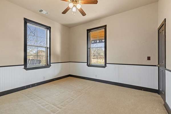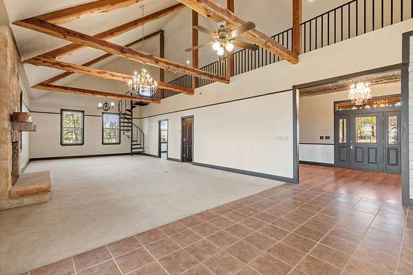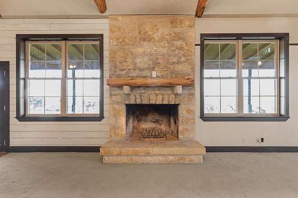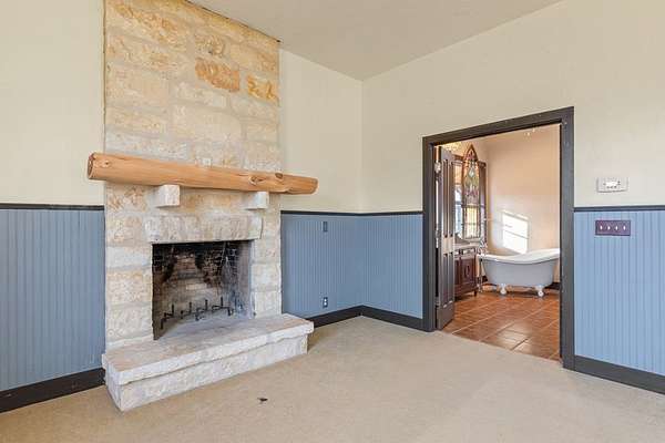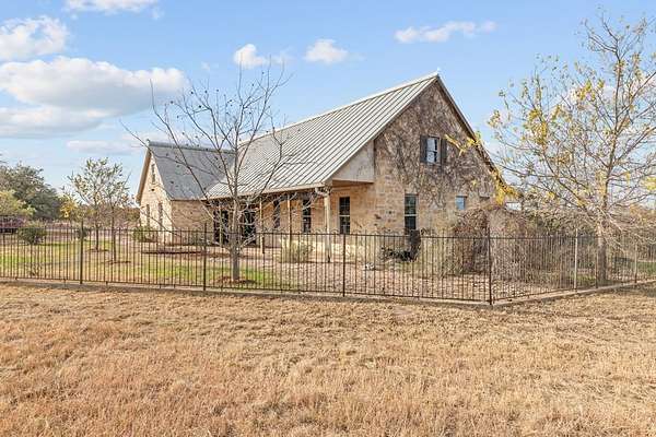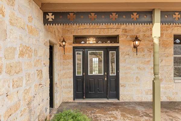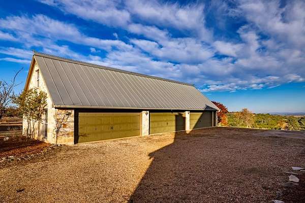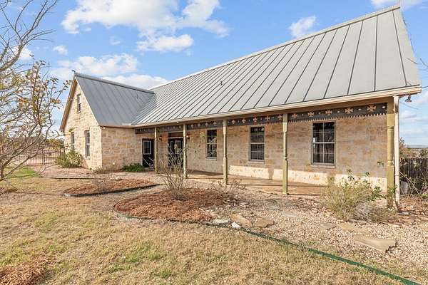 Looking for exceptional long-distance Hill Country views just minutes from Fredericksburg or an easy drive to Austin? Perched high in the scenic Seven Falls subdivision, this one-owner custom limestone home is thoughtfully built into the rolling Texas hills and offers sweeping northerly views across valleys, hills, and hay-producing fields. The story-and-a-half design features an open-concept floor plan where the kitchen, dining area, and great room come together seamlessly. Exposed beams and a striking wood-burning fireplace anchor the space, creating a warm and inviting atmosphere ideal for both everyday living and entertaining. Above the main living area, a spacious 1,098-square-foot open loft offers endless potential to customize--whether as additional bedrooms, studio space, or a private retreat. The primary suite is conveniently located on the main level and serves as a true sanctuary. It includes an ensuite bathroom with a freestanding soaking tub, its own impressive stone wood-burning fireplace, and a secure safe room that also functions as a walk-in closet. Outdoor living is equally impressive, with more than 800 square feet of covered porches providing the perfect vantage point to enjoy breathtaking sunsets and native Texas wildlife. A generous three-bay garage with additional storage above offers ample space for vehicles, recreational equipment, or a workshop. This hilltop retreat combines privacy, craftsmanship, and unforgettable views--all just moments from the charm of Fredericksburg.