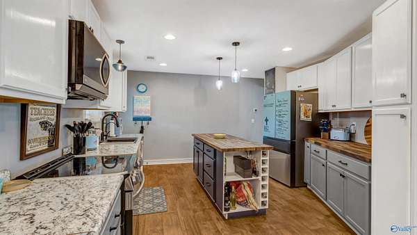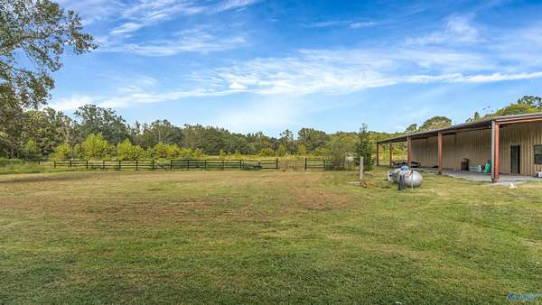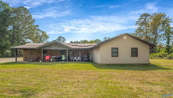 Est $1,807/moBring Your Horses! This 3BR/3BA brick home offers 2,130+/- sq. ft. on 3.5 acres with fenced pasture and a 6,000 sq. ft. metal barn built for equestrian use. Home features updated kitchen with new counters, butcher-block island, and modern appliances, plus a cozy stone fireplace and spacious primary suite with walk-in closet. Barn includes 6 stalls, wash bay, tack room, office, and full bath with covered parking for trailers or equipment. Convenient to Scottsboro yet private - country living at its best!