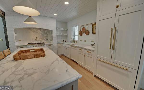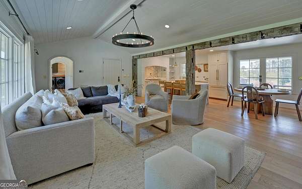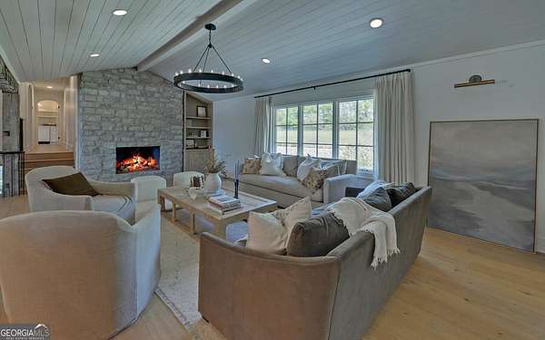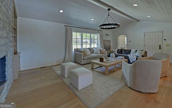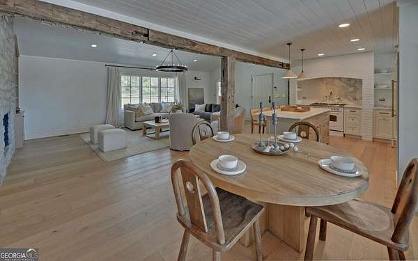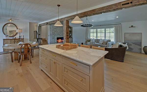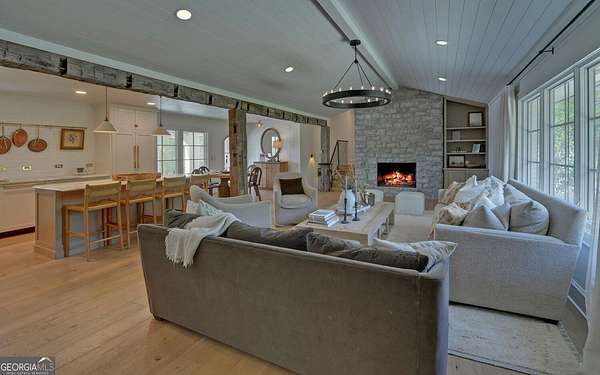 Impressive designer home offering style, comfort, and resort-style outdoor living. This 4-bedroom, 3-bath residence has been beautifully updated with elegant finishes throughout - from wide-plank flooring and custom lighting to sleek hardware and modern color palettes. The open-concept great room features shiplap ceilings, a stone fireplace, and abundant natural light. The kitchen is a showstopper with quartz countertops, brick/tile backsplash, upscale appliances, and a generous island perfect for entertaining. The spacious primary suite offers a luxurious bath with designer walk-in custom master closet and private access to the deck. The lower level provides additional living space ideal for guests, office, or recreation area. Step outside to your private backyard oasis with sparkling inground pool, covered patio, and plenty of room for outdoor dining and relaxation. Located in a quiet, desirable neighborhood just minutes from downtown Hartwell and Lake Hartwell - where designer style meets easy living.