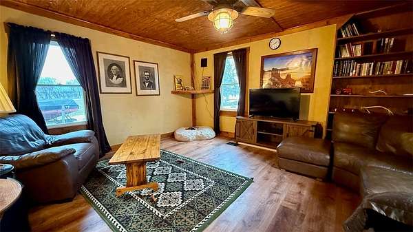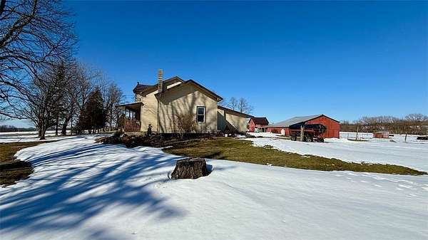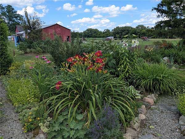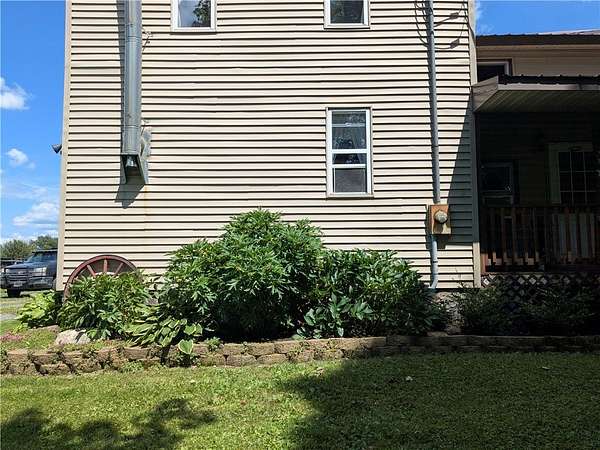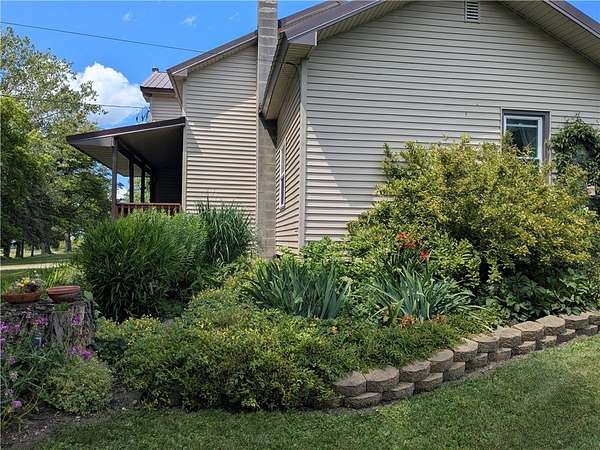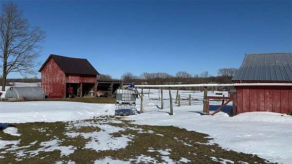 OPEN HOUSE - Saturday, March 28, 2026 | 10:30 AM to Noon. Looking for land, a home, and useful outbuildings? This private 5+ acre property offers a classic two-story farmhouse, built in 1890, with over 1,600 square feet of living space, barns and additional buildings, livestock fencing, and incredible perennial gardens with winding paths, mature trees, and space to run. Inside, you'll find 3 large bedrooms on the upper level, along with an oversized landing. The kitchen with breakfast bar opens to a cozy south-facing living room and spacious dining area in the center of the house. Walk in Pantry, Oversized Bathroom with washer and dryer hookups. Sitting room, two stoves for that cozy heat on a blustery winter day. Summers enjoy the covered front porch facing the western sky, plus a covered rear area that works well as a shop space or the perfect covered patio. Versatility both inside and out. Outside, the barn includes stalls for livestock and access to a large fenced pasture. This peaceful country setting offers unobstructed sunrise views and sweeping sunset views. Easy commute to Auburn, Ithaca, Cortland and Syracuse. Qualified buyers welcome.